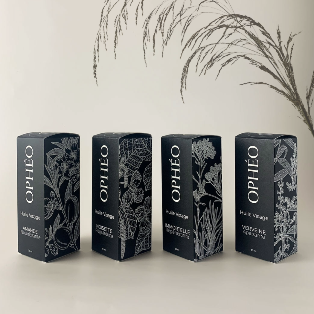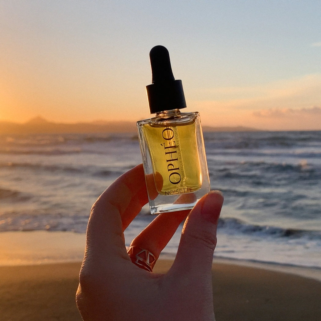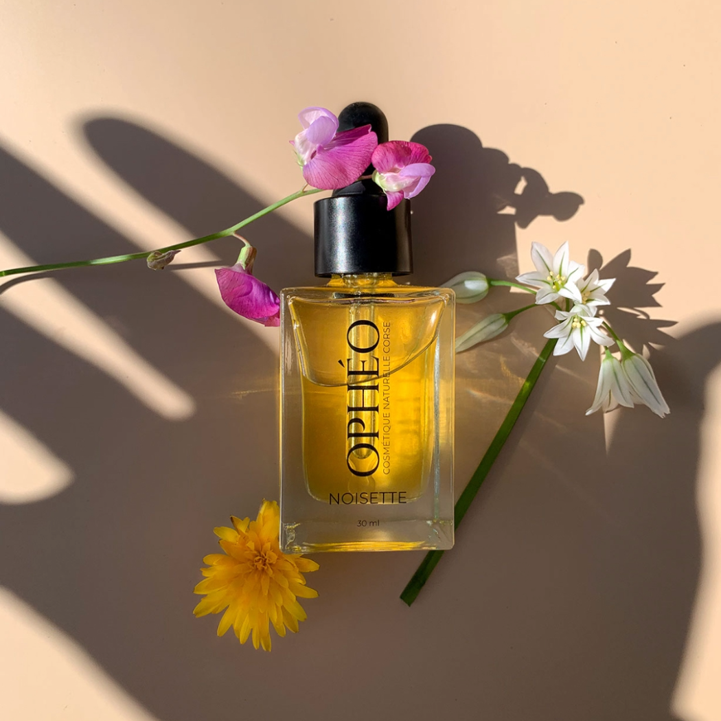 L’huile de noisette, riche en oméga 9 et vitamine E, réputée pour réguler le sébum de la peau et aider à lutter contre les imperfections.