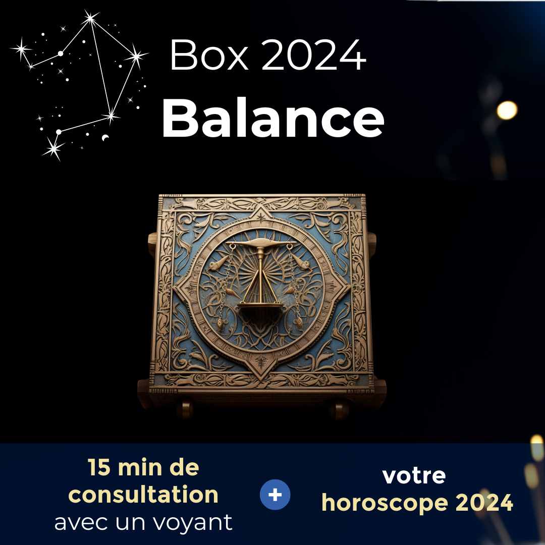 Équilibrez votre destinée en 2024 ! ⚖️✨ Balance, l’année 2024 scintille de promesses et d’opportunités. C’est votre moment de briller ! Notre Box 2024 est l’outil divinatoire ultime pour vous guider vers une année de prospérité et d’harmonie. Célébrez votre essence en 2024 avec des conseils spirituels sur mesure.