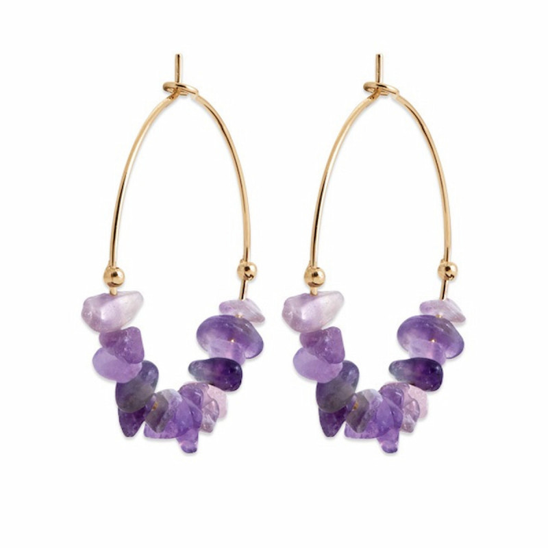 Boucles d’Oreilles Creoles Amethyste plaqué or