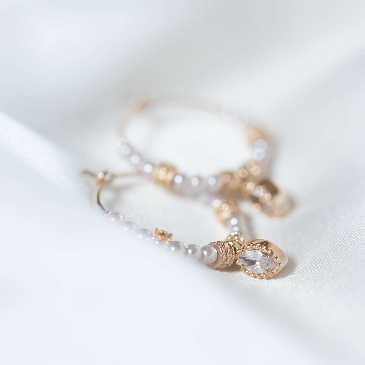 Boucles d’Oreilles Creoles Perles Blanches plaqué or