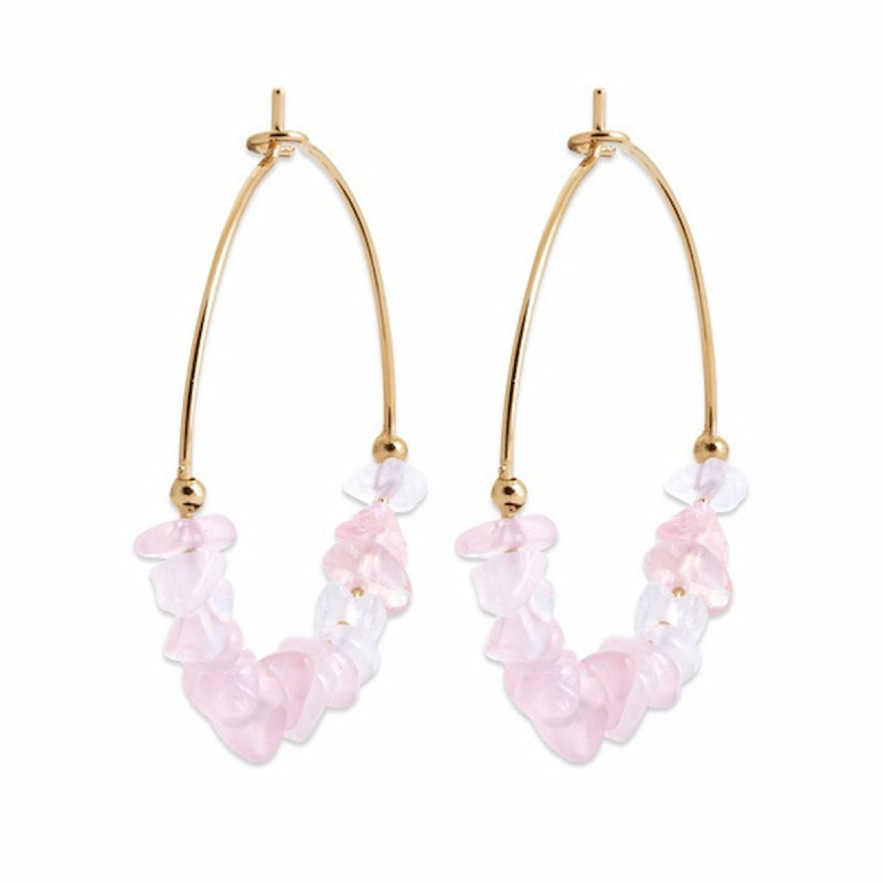 Boucles d’Oreilles Creoles Quartz Rose plaqué or