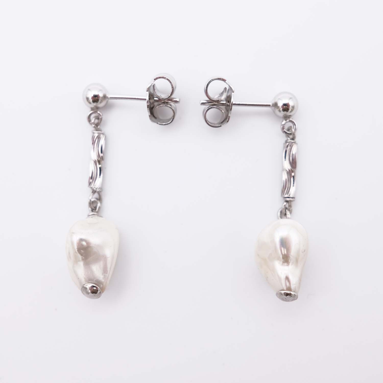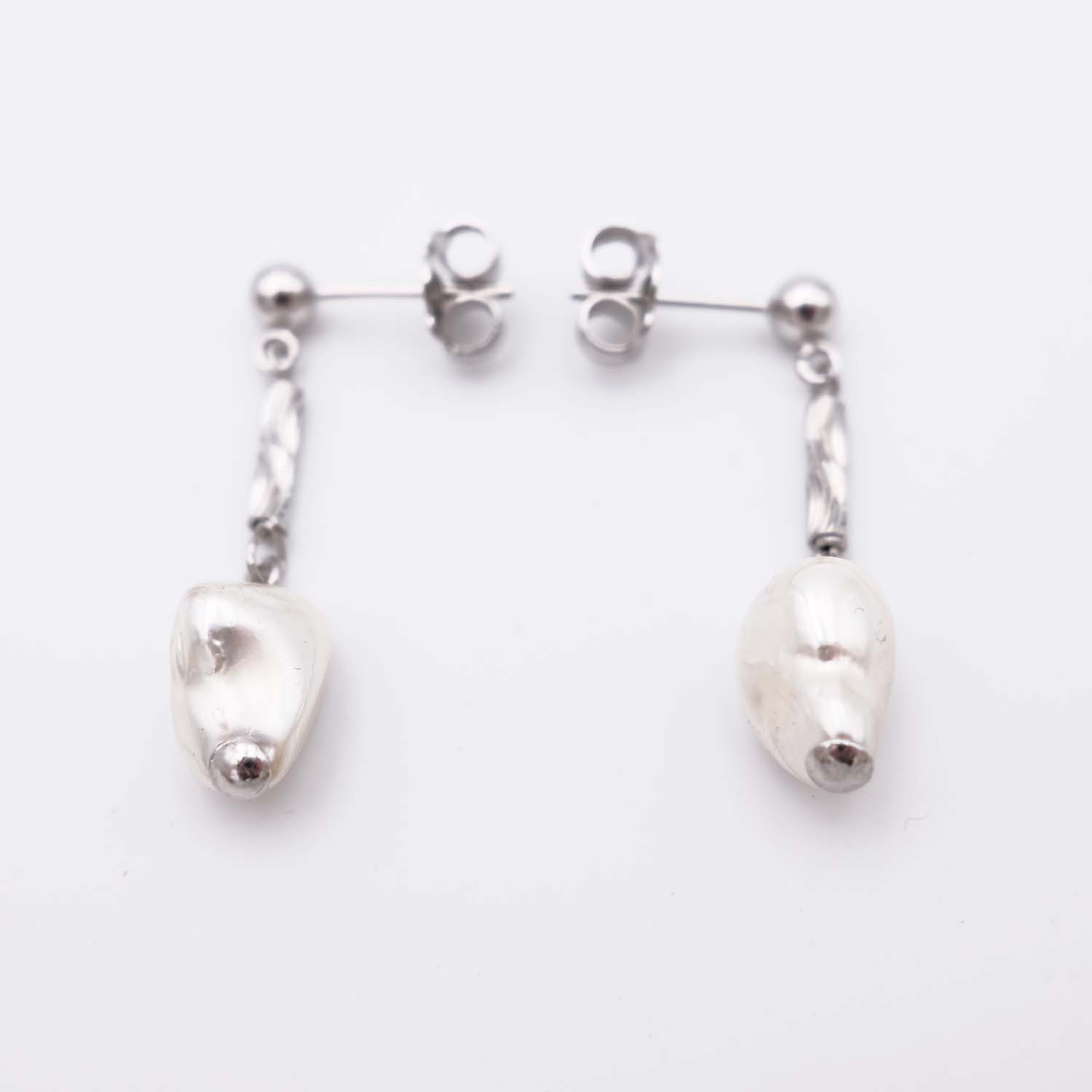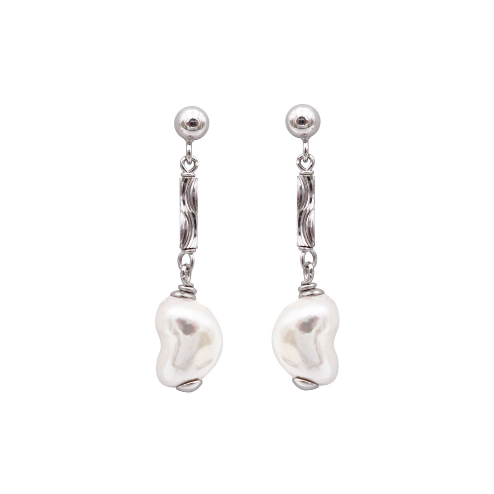 Ces boucles d’oreilles en perles sont conçues avec des perles de forme irrégulière. Cet aspect brut et original donne un caractère naturel et particulier aux boucles d’oreilles en perles. Les perles sont blanches et reflètent la lumière comme nul autre bijou. Les perles sont fixées à un minuscule cylindre strié, lui-même surmonté d’une petite boule en argent. C’est un bijou original qui sort du lot. Les boucles d’oreilles en perles sont élégantes et raffinées, à la fois sophistiquées et naturelles. Leur fixation est assurée par une fermeture à poussoir.