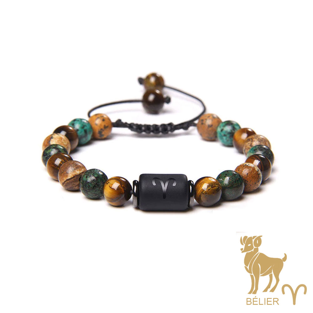 Signes astrologiques associés au Bracelet Bélier – Œil de tigre, Turquoise, Jaspe