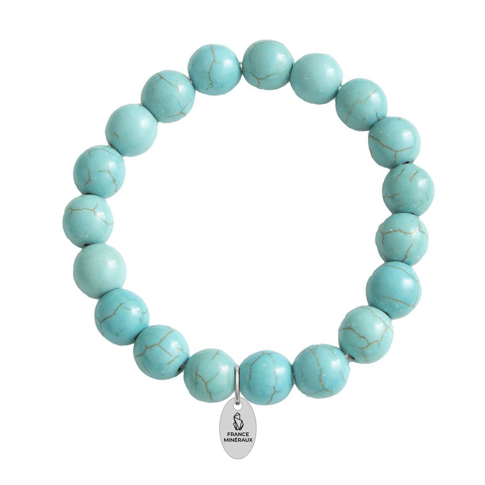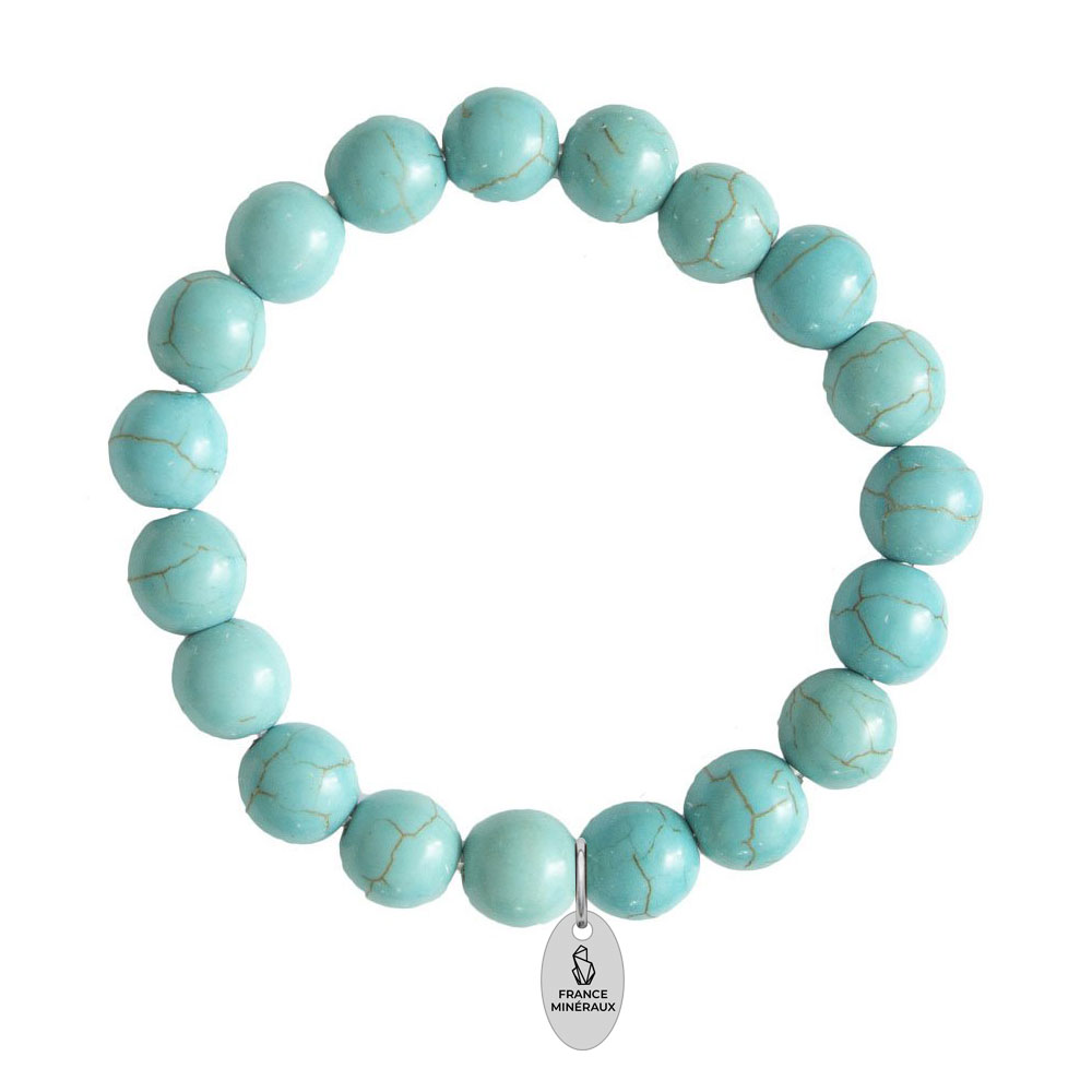 - Le bracelet howlite bleue 10mm s’accorde avec le chakra gorge. Celui-ci représente la communication et l’échange.