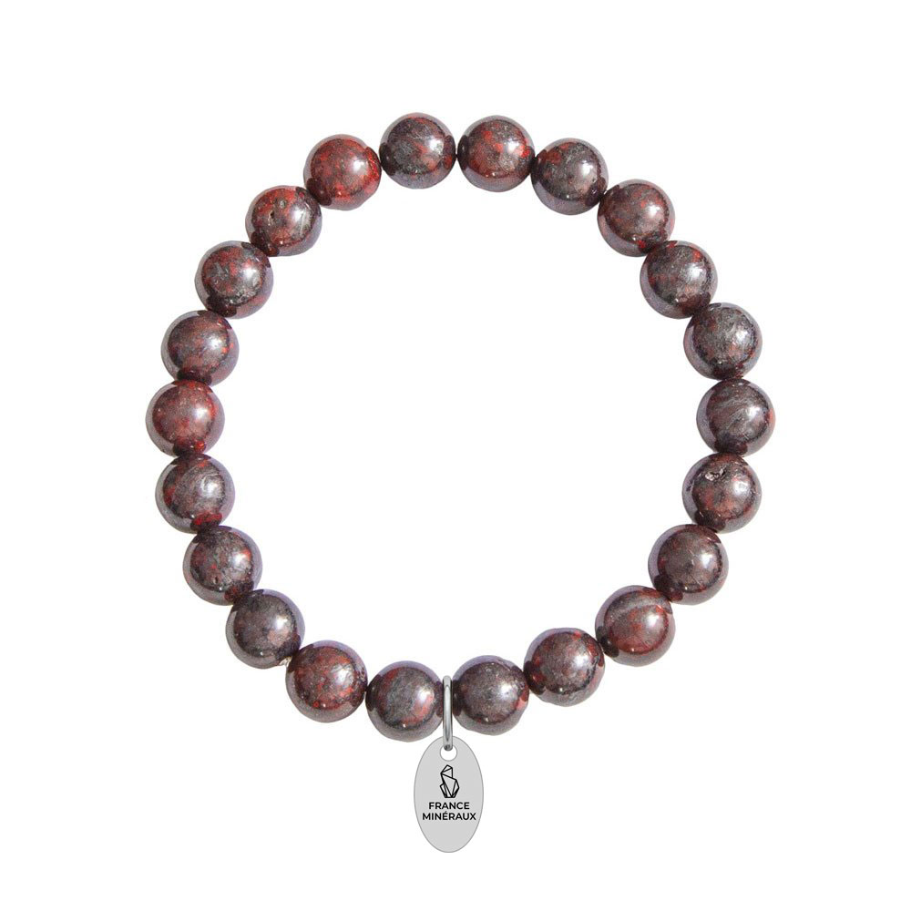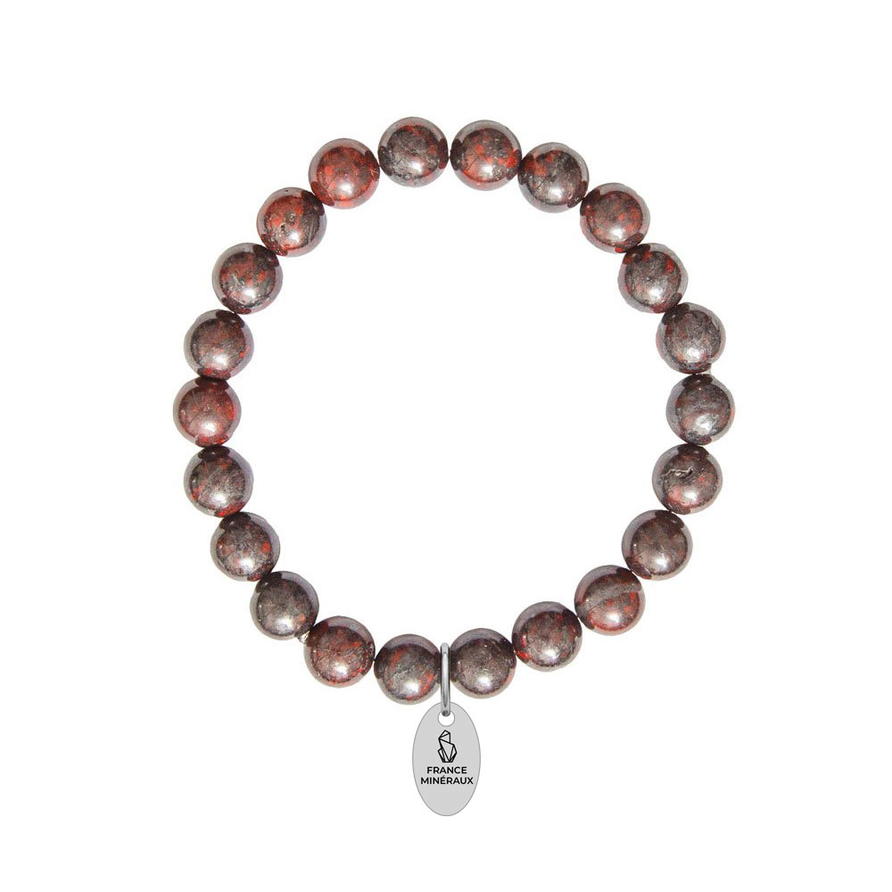 France minéraux vous propose de découvrir le bracelet jaspe bréchique en pierres boules de 8mm. Durant la préhistoire, la pierre jaspe bréchique était utilisée pour la confection d’outils ou d’armes. Dans l’Antiquité ainsi qu’au Moyen-Age, elle était exploitée dans la fabrication d’ornements ou de bijoux. Le nom de la pierre jaspe bréchique vient des mots latins iaspis et jaspidem signifiant pierre et mouchetée. La pierre jaspe bréchique est surnommée le protecteur suprême à cause de sa couleur rouge provenant de sa teneur en oxyde de fer.