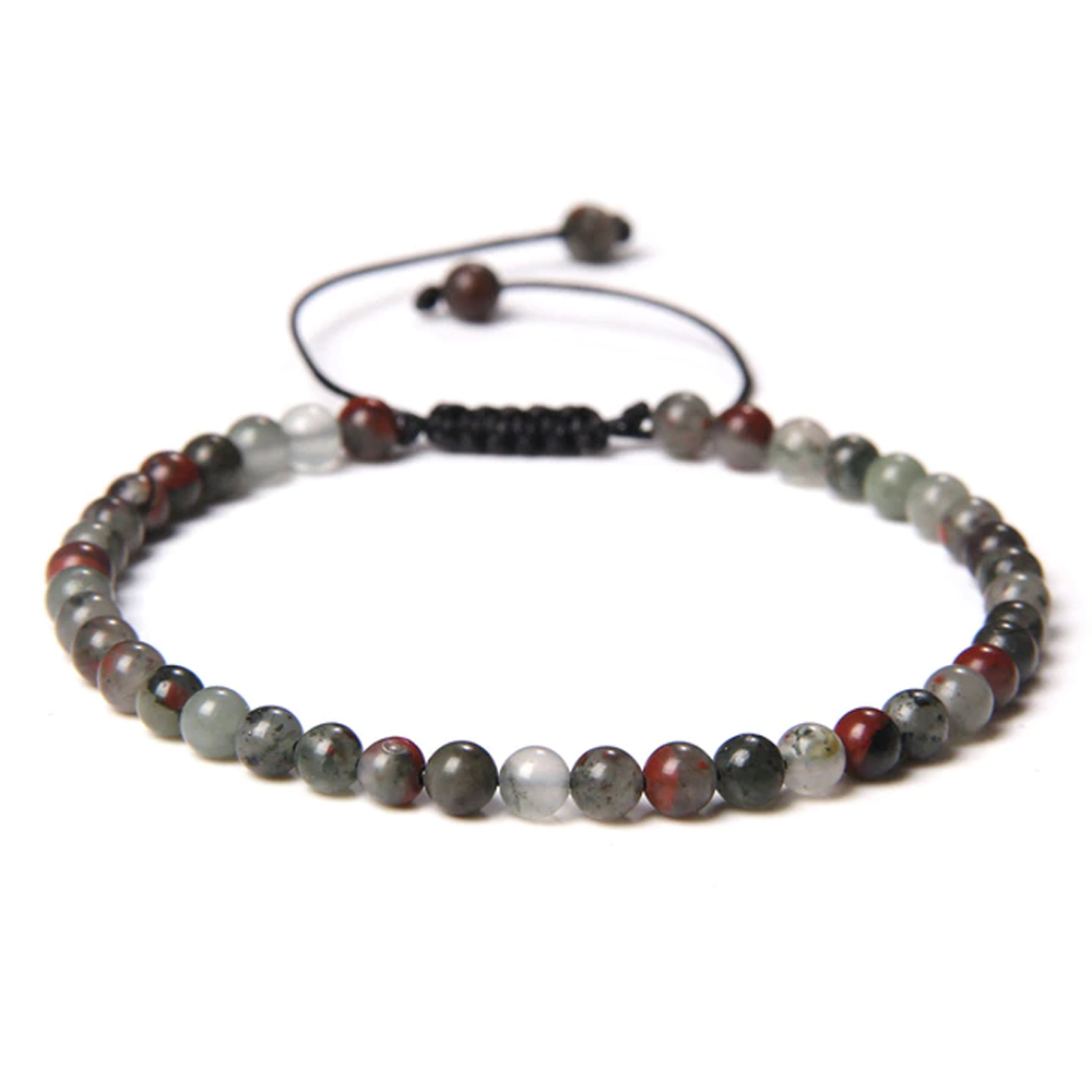 Bracelet Jaspe héliotrope composé de pierres boules de 4mm cordon ajustable