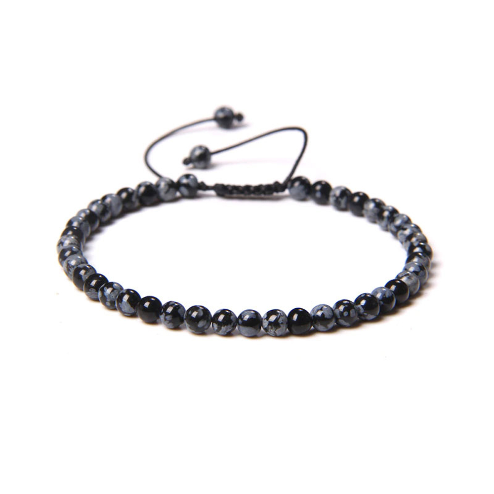 Bracelet Obsidienne neige composé de pierres boules de 4mm cordon ajustable