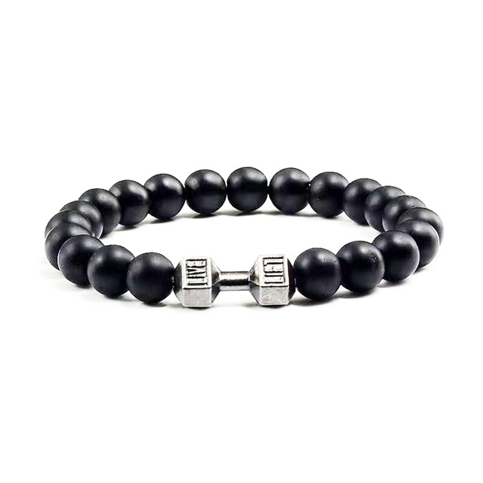 Le bracelet Onyx mat avec une perle Haltère combine l’élégance et la symbolique de la force. Les pierres d’onyx, soigneusement sélectionnées, sont taillées en sphères de 8mm, offrant un aspect à la fois raffiné et robuste. La perle Haltère, centrale dans ce design, apporte une touche unique, symbolisant la force, la détermination et la discipline. Les nuances profondes et mates de l’onyx contrastent avec la perle Haltère, créant un équilibre visuel qui attire l’œil. Ce bracelet est une représentation parfaite pour ceux qui valorisent la force physique et mentale, ainsi que l’engagement dans le bien-être personnel. Il se prête aussi bien aux tenues décontractées qu’aux looks plus formels, faisant de lui un accessoire polyvalent. La solidité de l’onyx garantit une longévité remarquable, ce qui rend ce bracelet idéal pour un usage quotidien ou comme cadeau symbolique pour les passionnés de fitness et de musculation.