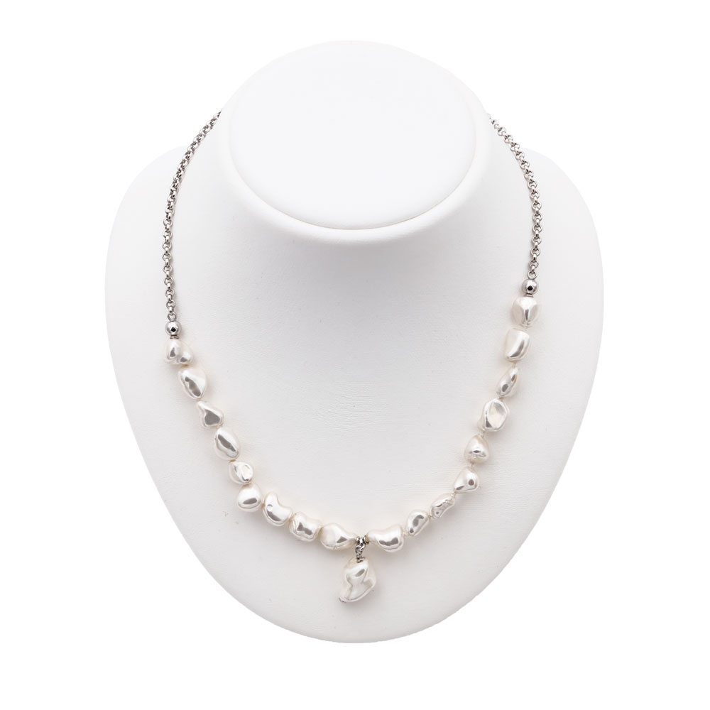 Description du Collier en Perles de Majorque – Baroque – Long. 42 à 50 cm
