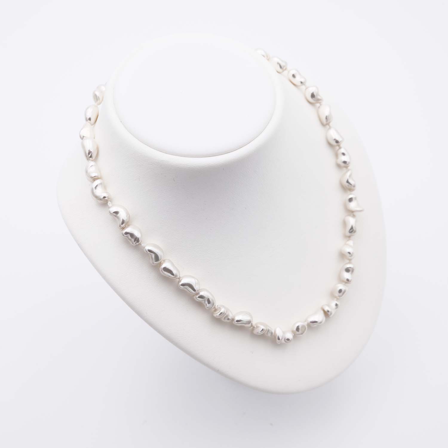 L’asymétrie des perles qui composent ce collier participe pleinement au charme et au caractère unique de ce bijou. D’une longueur de 45 cm et orné d’apprêts en argent rhodié 925, ce collier en perles viendra sublimer votre tenue.
