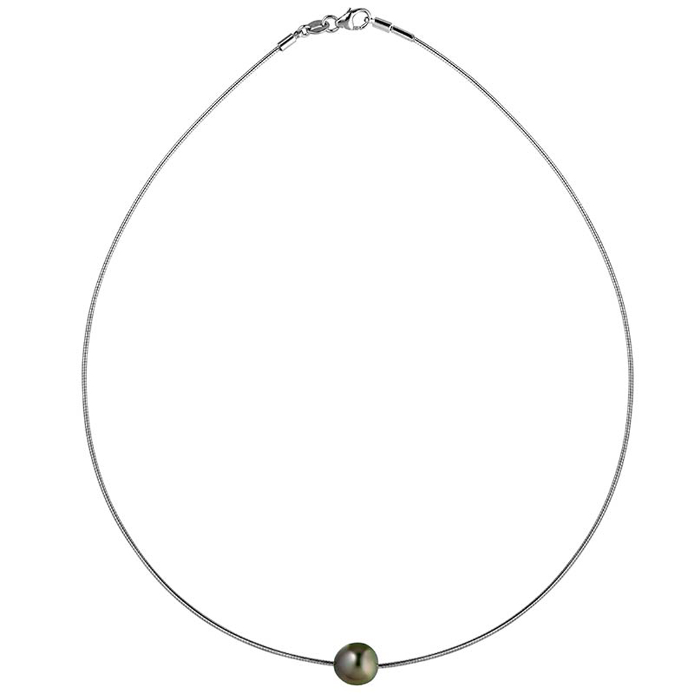Description du collier omega Perle de Tahiti ronde / ovale – Argent 925 rhodié