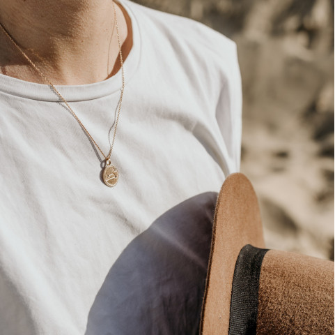 Bijou français - Livré avec pochette artisanale de Bali en coton bio - Matière : plaqué or 18k (à base d'or à 100% recyclé) Plaqué or certifié REACH - Argent 925 rhodié (100% recyclé) - Atelier de fabrication à 100% énergie renouvelable - Emballage en papier kraft recyclé