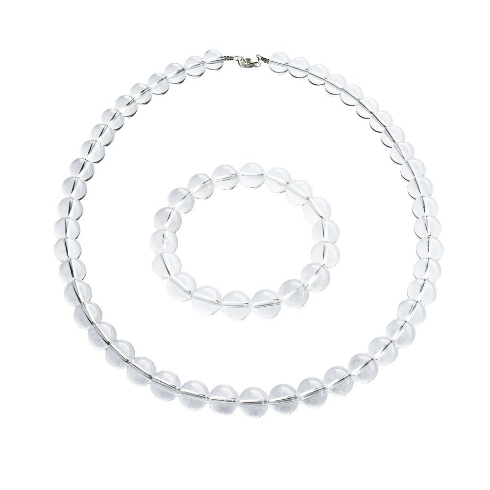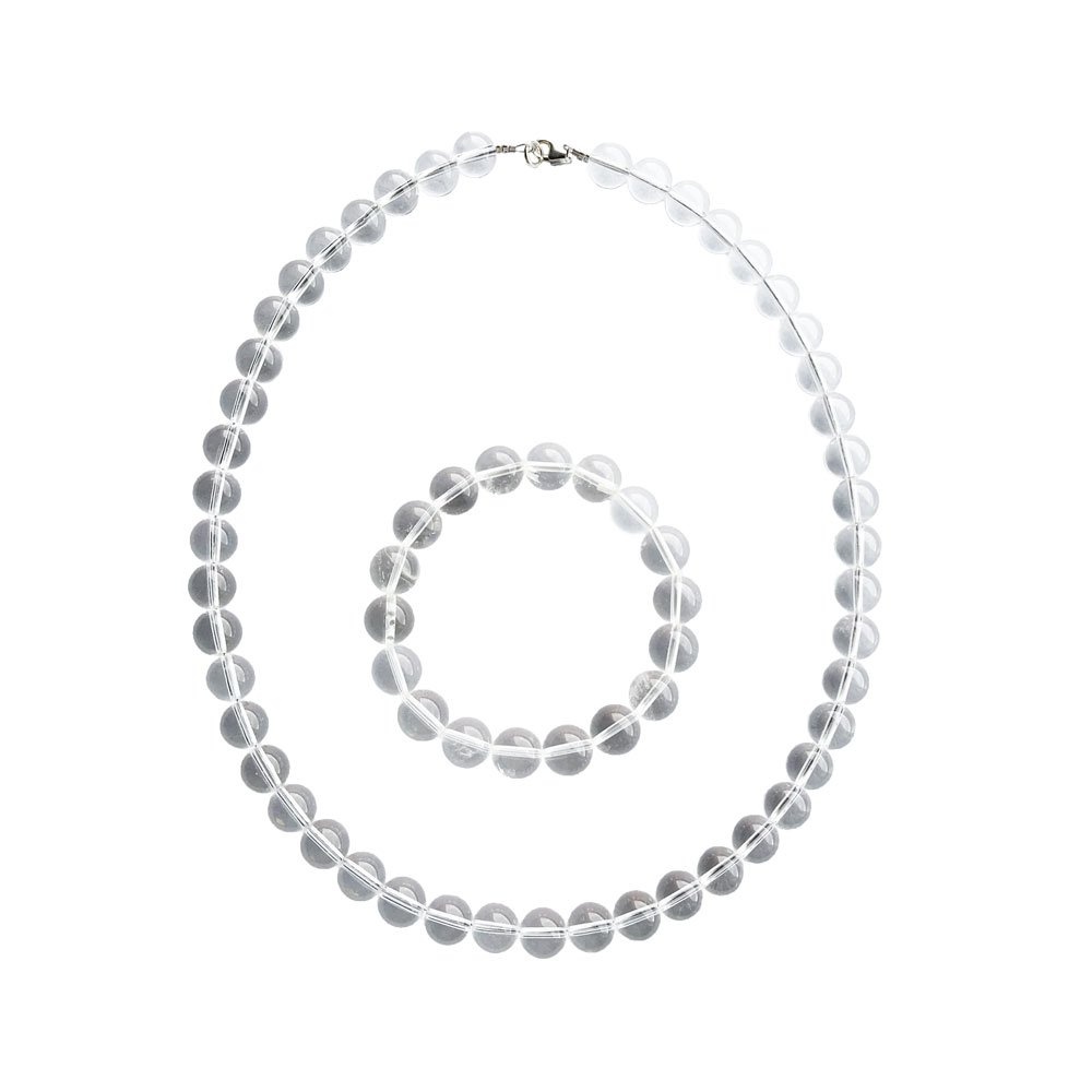 Coffret composé du bracelet et du collier en cristal de roche en pierres boules de 10mm