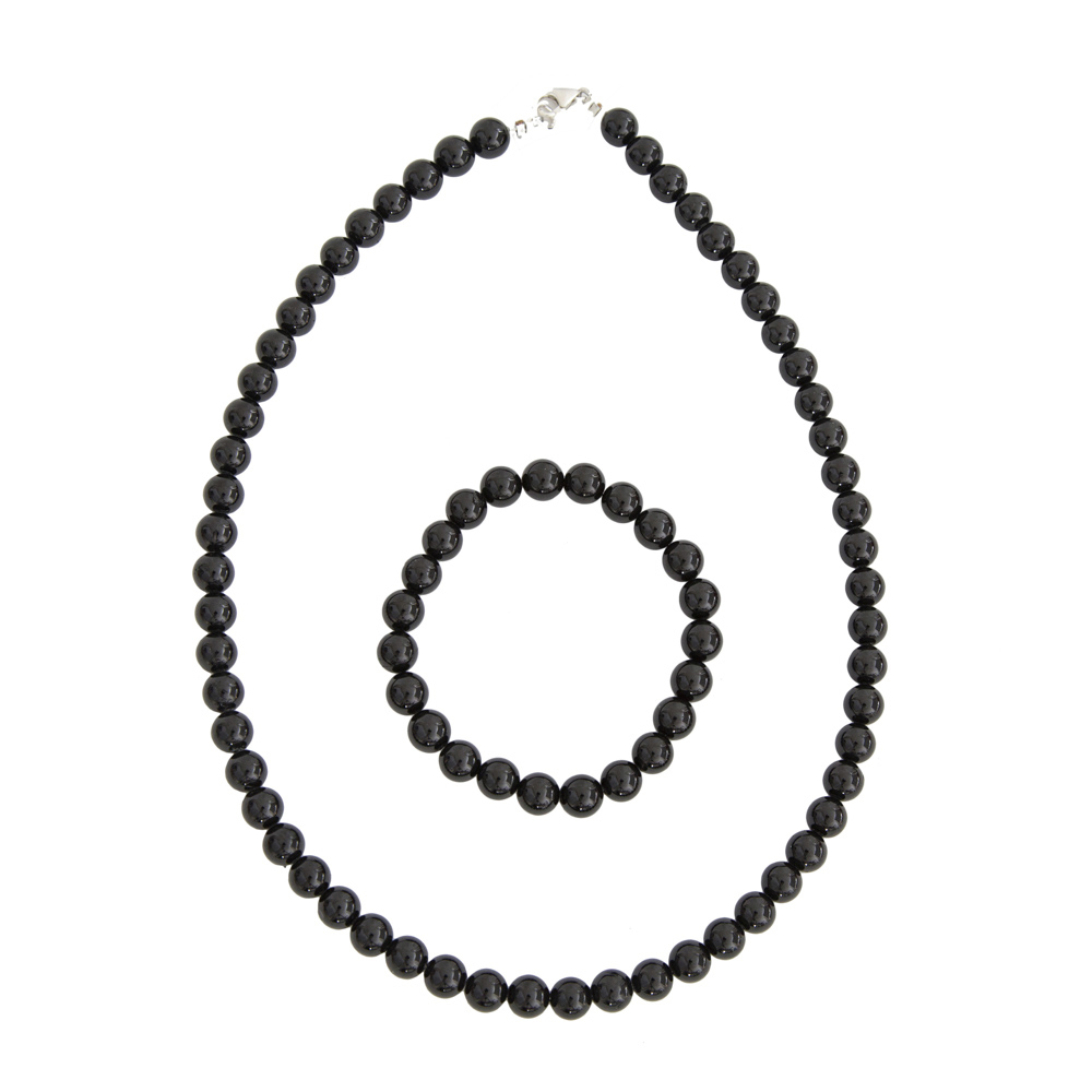Parure composée du bracelet et du collier en agate noire en pierres boules de 8mm