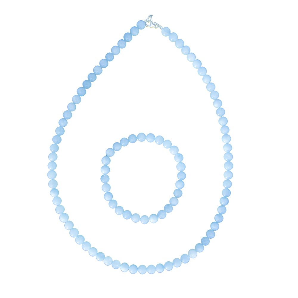 La parure aigue-marine en pierres boules de 6mm améliorerait et apaiserait l’esprit selon toutes les croyances associées en lithothérapie :