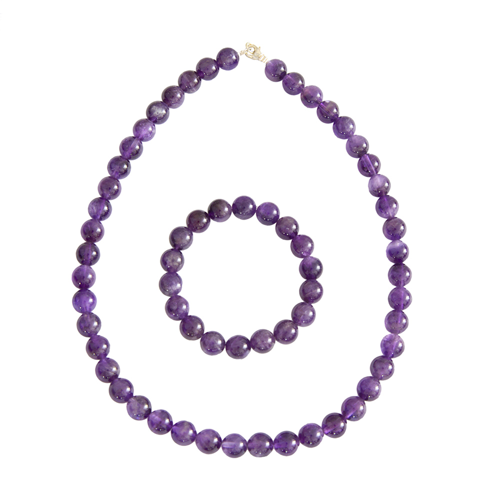 Parure composée du bracelet et du collier en améthyste en pierres boules de 10mm