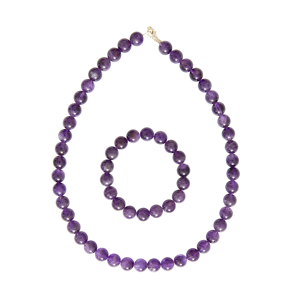 France Minéraux vous propose différentes tailles pour cette parure améthyste en pierres boules 10mm . Pour le bracelet, 18, 20, ou 22 cm. Pour le collier, 39, 42, 48, 56, 78, ou 100 cm. Et si en prenant vos mesures vous vous apercevez que rien ne vous convient, vous pouvez prendre contact avec nos équipes pour une réalisation sur-mesure. Si vous voulez en savoir plus sur les vertus de cette pierre de la parure améthyste 10mm , toutes les informations sont ci dessous.