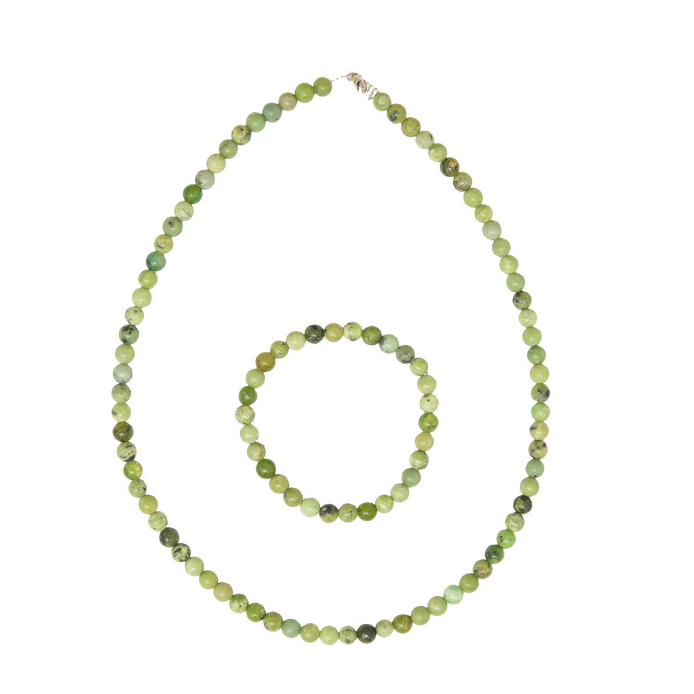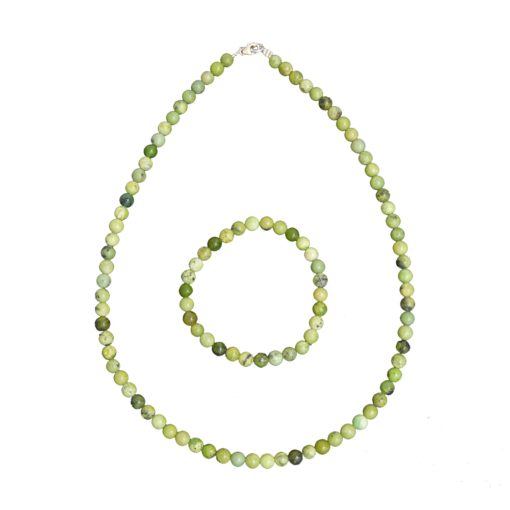 Parure composée du bracelet et du collier en chrysoprase citron en pierres boules de 6mm
