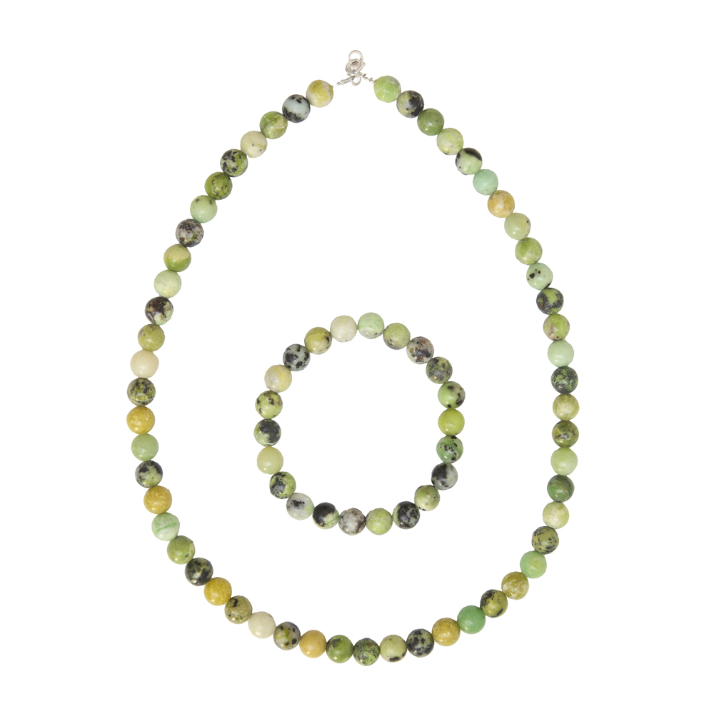 Parure composée du bracelet et du collier en chrysoprase citron en pierres boules de 8mm
