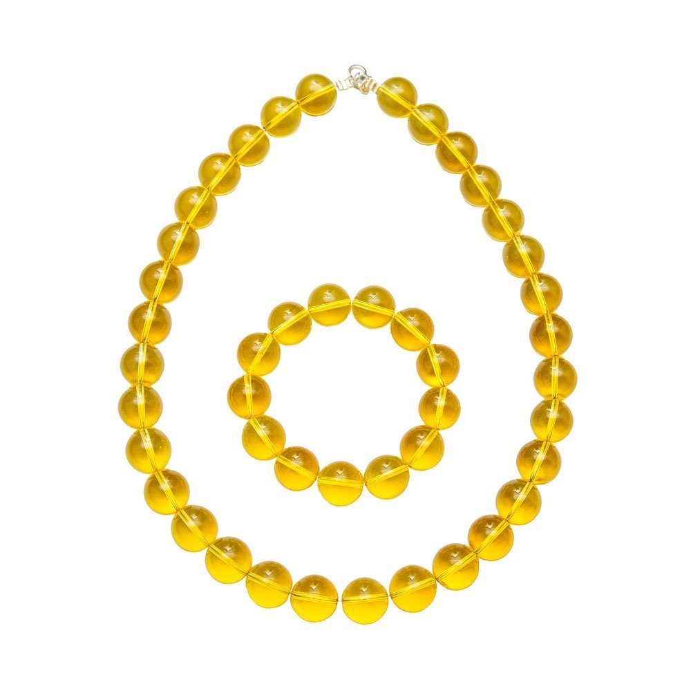 Parure composée du bracelet et du collier en citrine en pierres boules de 14mm