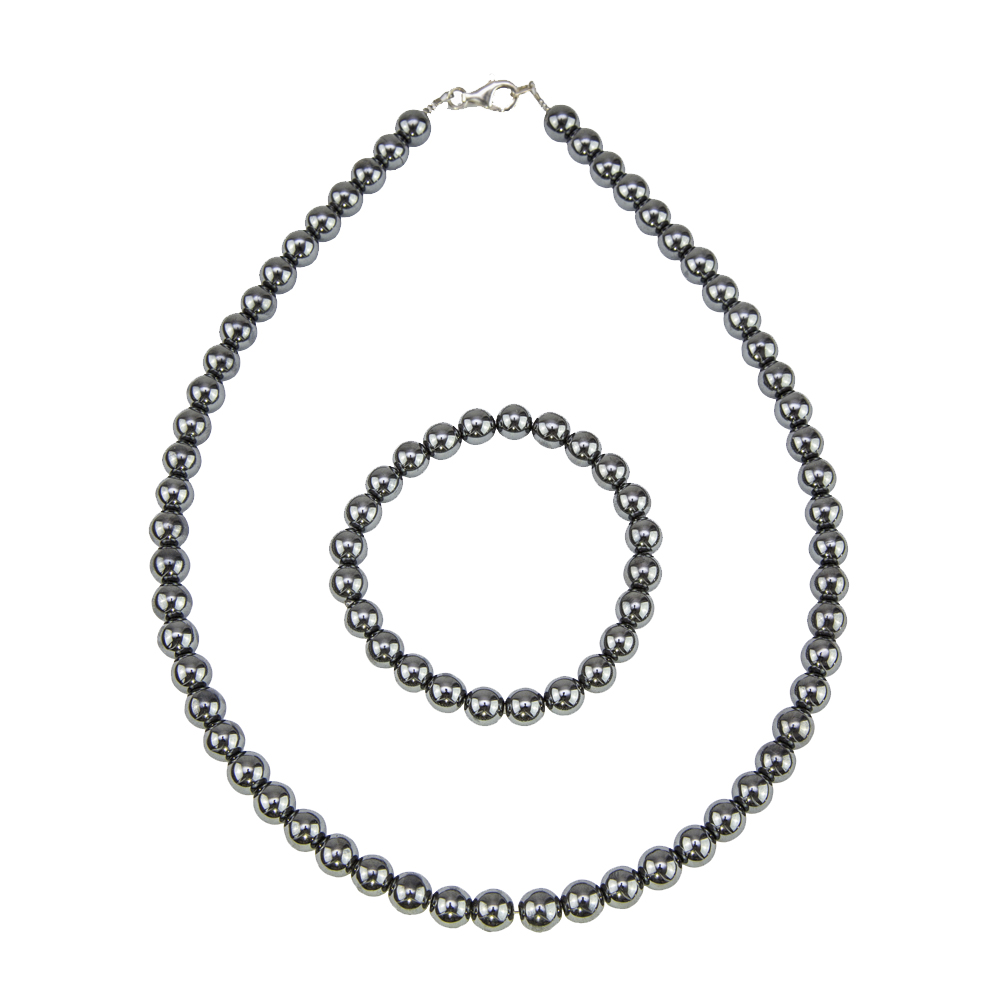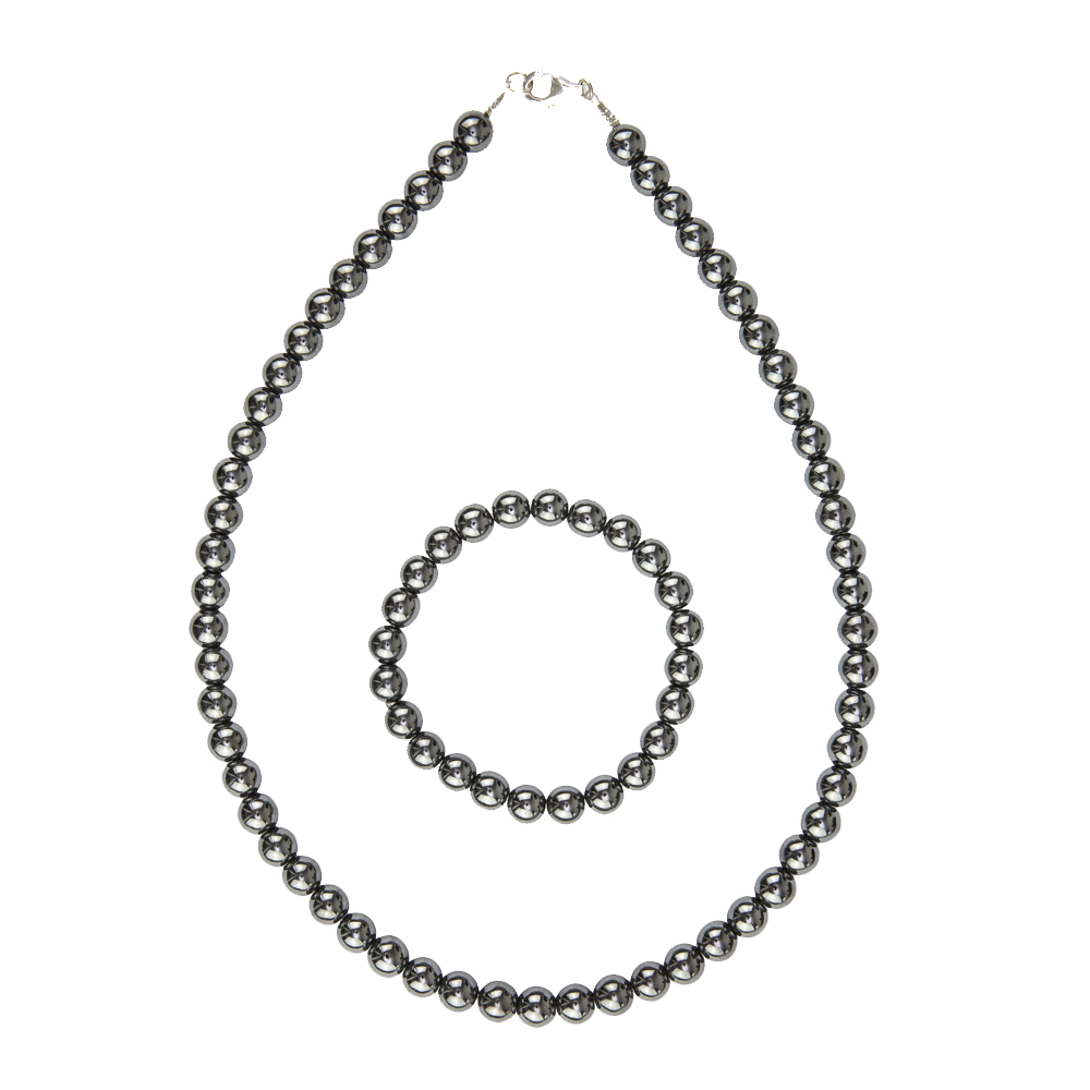 Parure composée du bracelet et du collier en hématite en pierres boules de 8mm