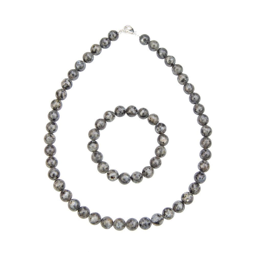 Parure composée du bracelet et du collier en labradorite avec inclusions en pierres boules de 10mm