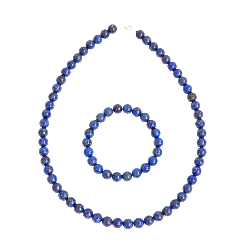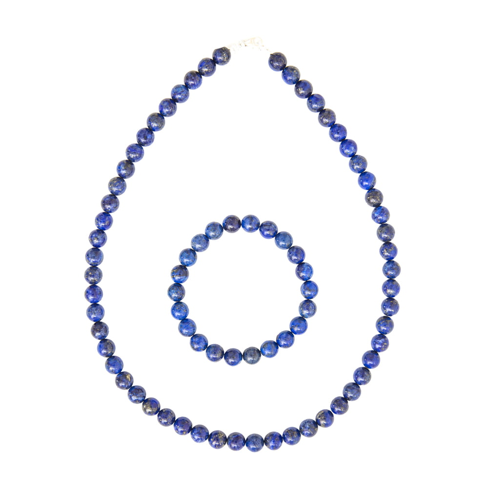 Parure composée du bracelet et du collier en lapis-lazuli en pierres boules de 8mm