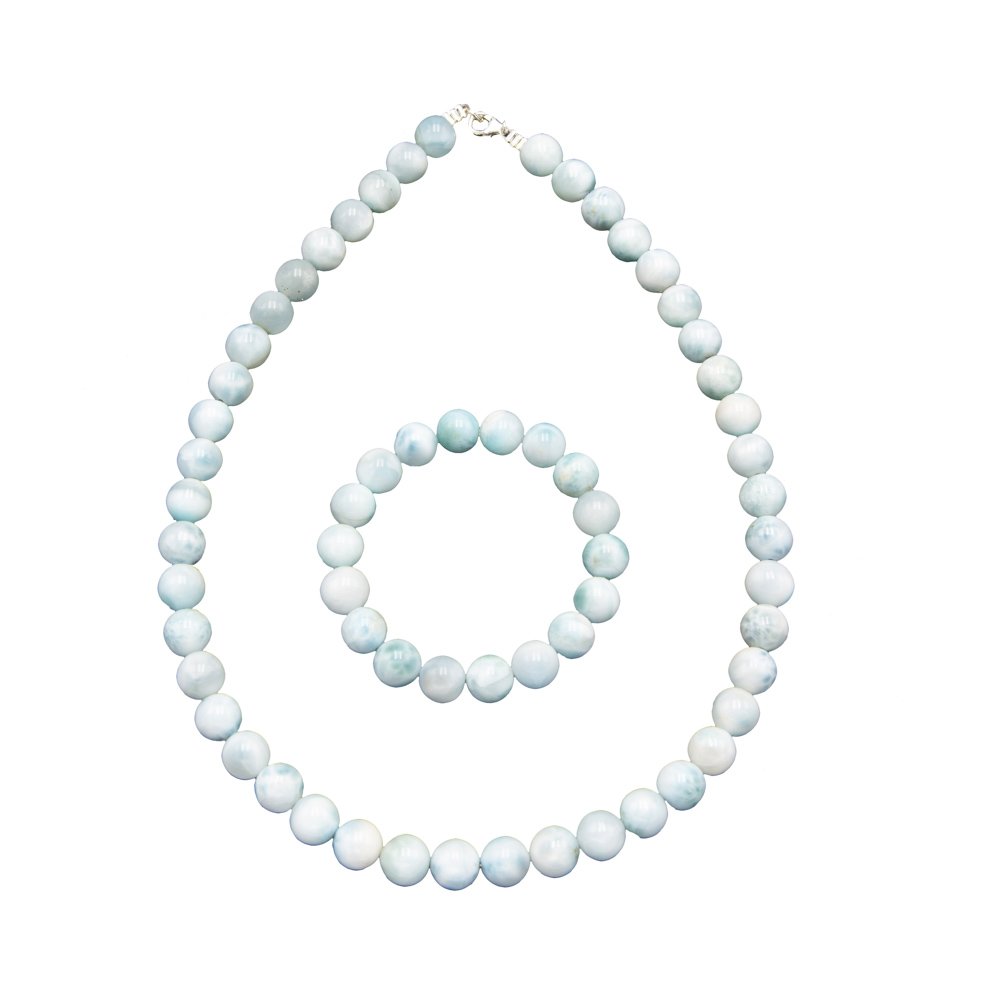 - Etant liée au cinquième chakra, celui de la gorge, il facilite la communication et contribue à avoir une parole sincère, franche et authentique. Apporte beaucoup de charisme à la personne qui porte les attributs de la parure larimar 10mm.