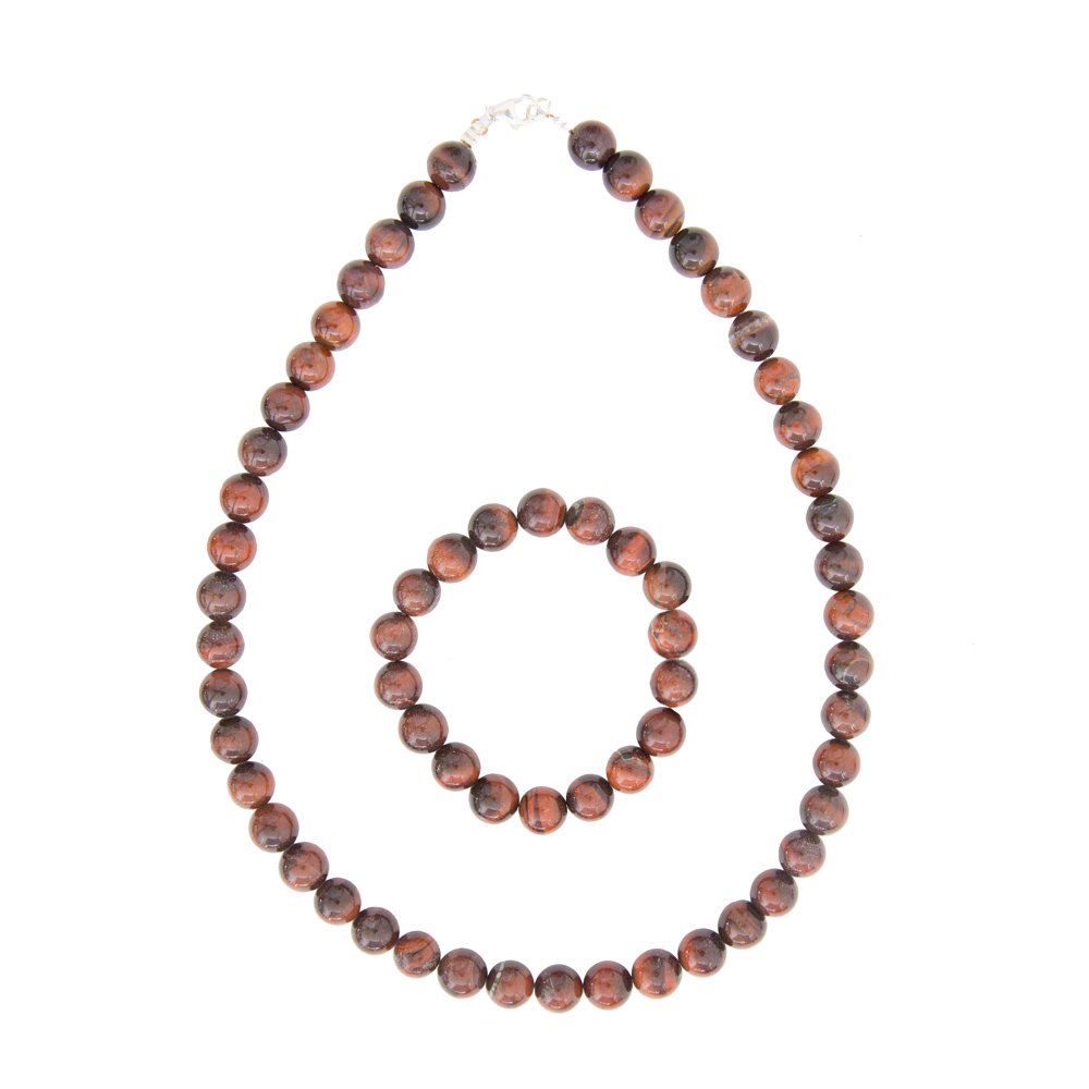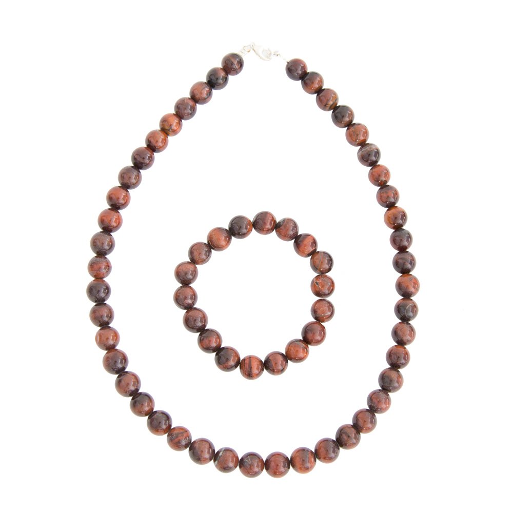 Parure composée du bracelet et du collier en oeil de boeuf en pierres boules de 10mm