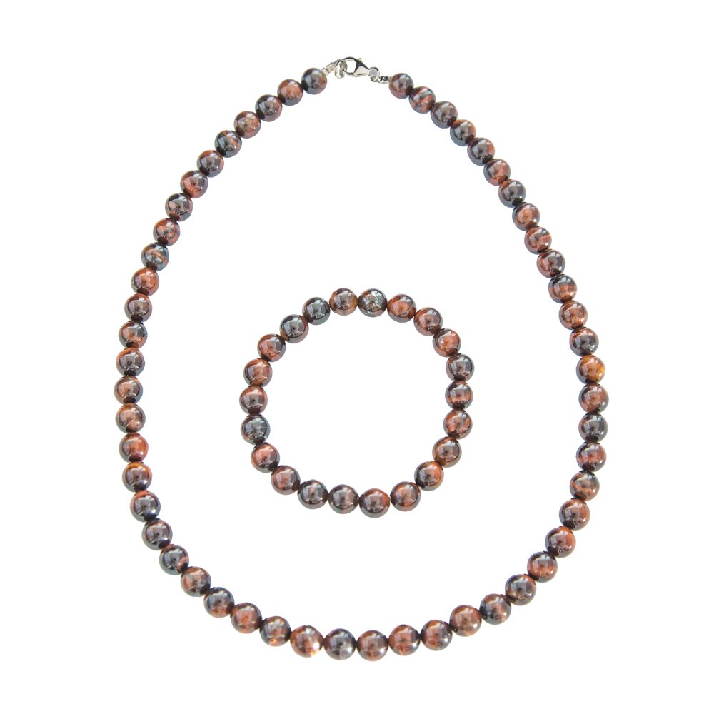 Parure composée du bracelet et du collier en oeil de boeuf en pierres boules de 8mm