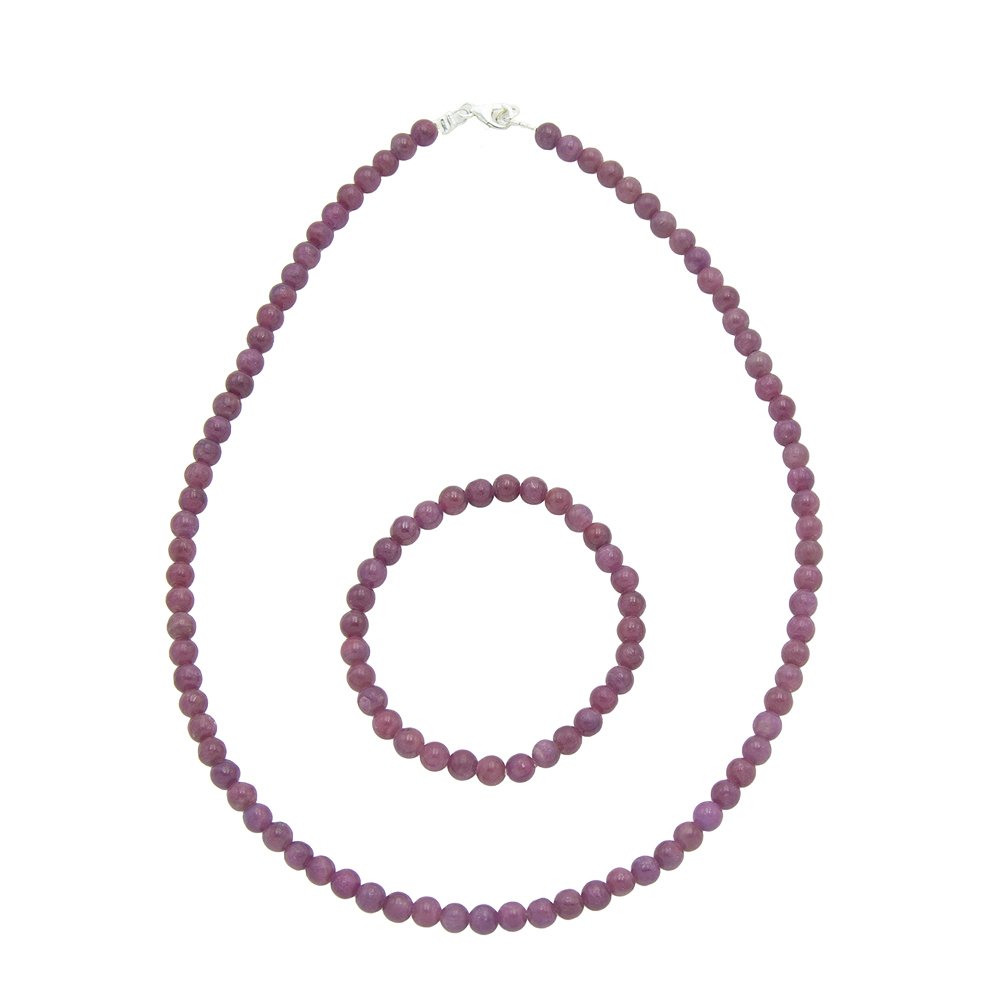 Parure composée du bracelet et du collier en rubis en pierres boules de 6mm
