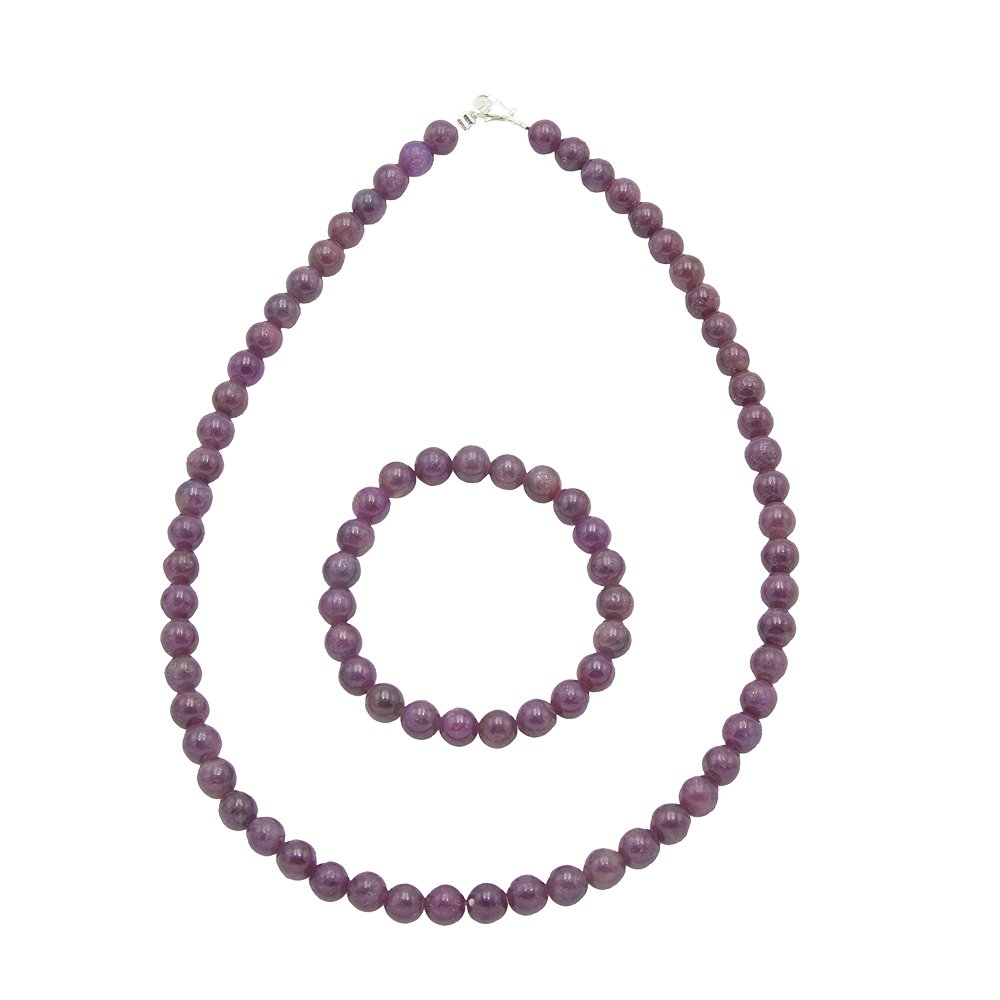 Parure composée du bracelet et du collier en rubis en pierres boules de 8mm