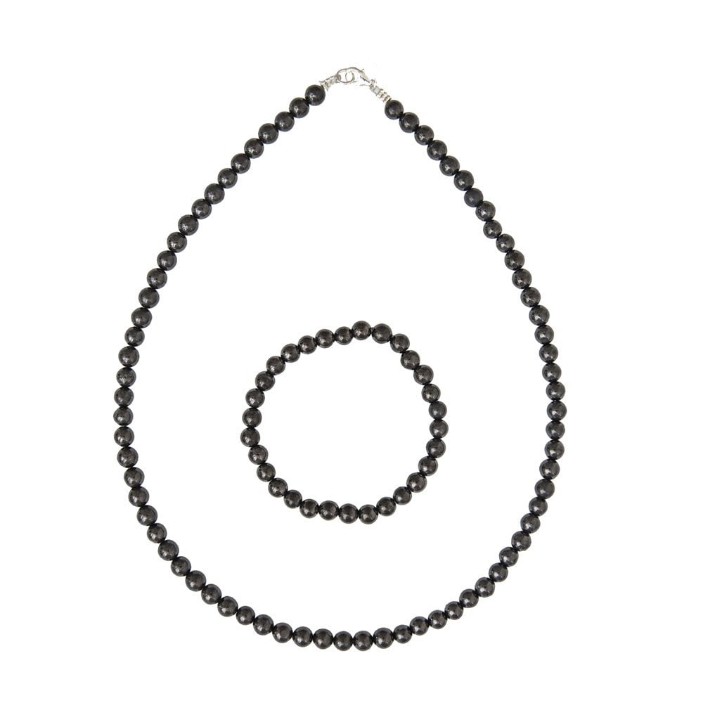Parure composée du bracelet et du collier en shungite en pierres boules de 6mm