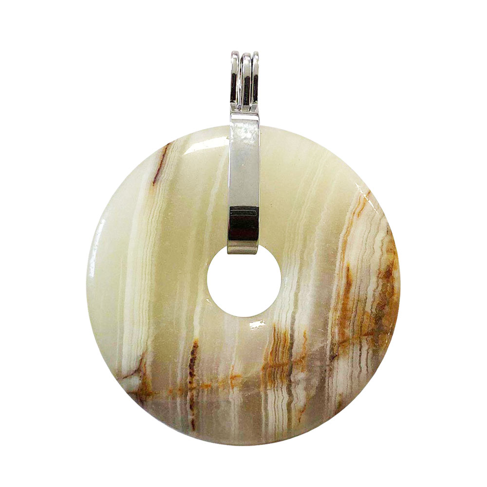 - Le pendentif aragonite verte donut a une influence directe sur les chakras lombaire et racine.