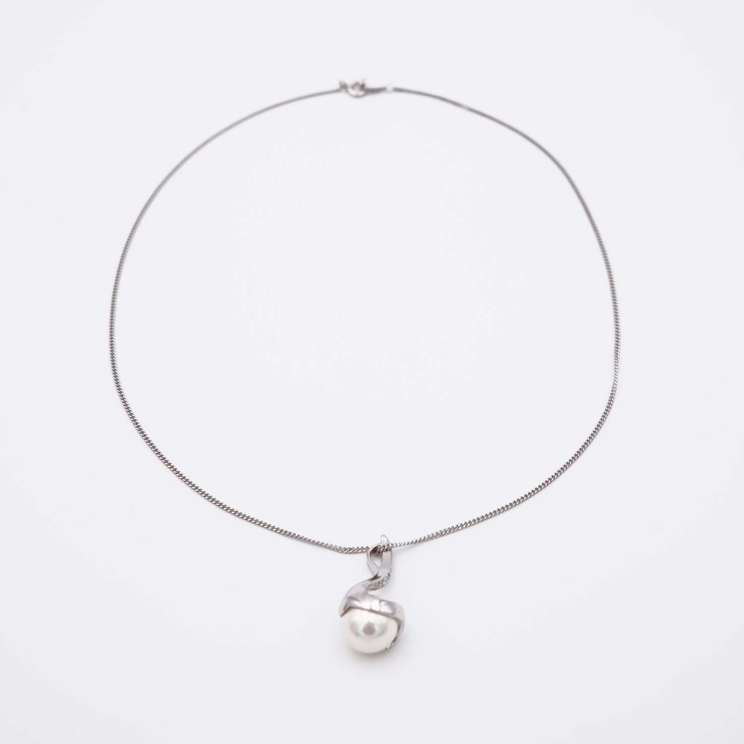 Description du pendentif en perles de Majorque et chaîne – 12 x 25 mm