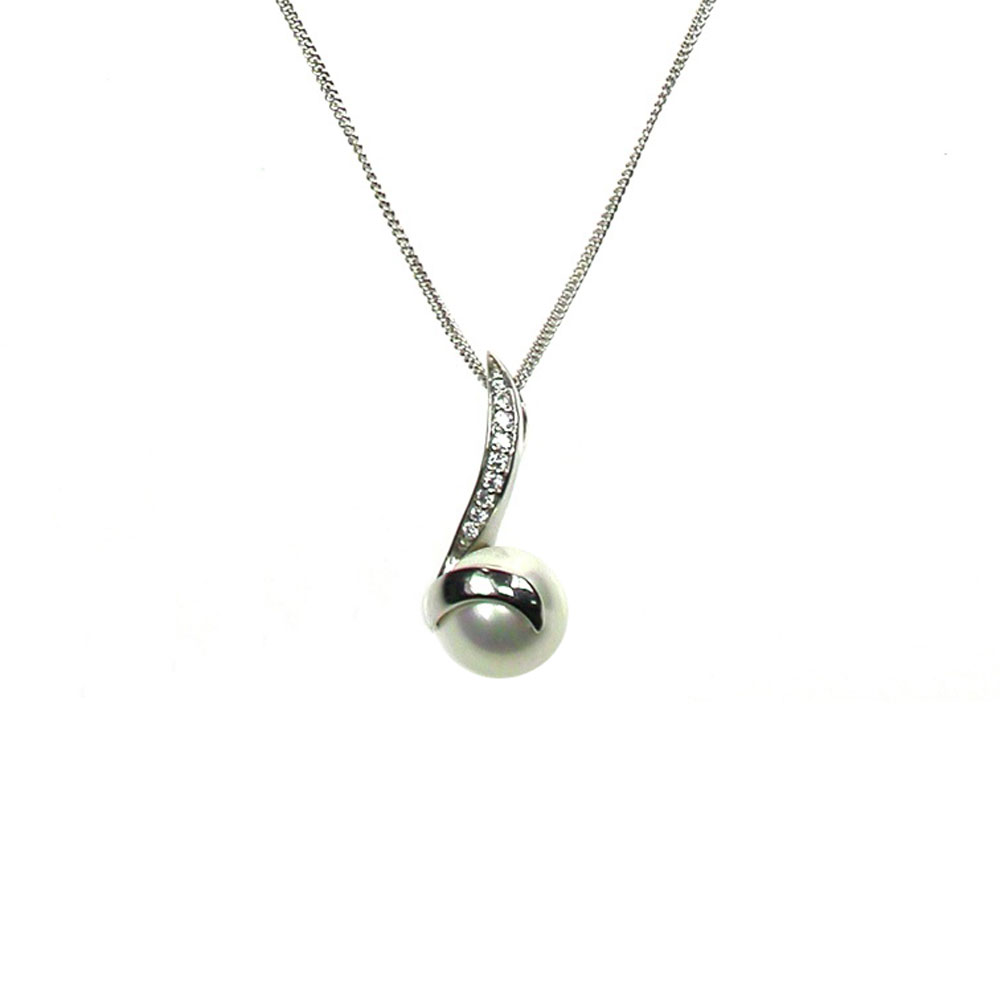 Ce pendentif est doté d’une chaîne aux maillons de type gourmette, incroyablement fins et serrés. L’apparence épurée que cela lui donne est sublimée par une unique perle de Majorque d’un diamètre de 12 mm. De couleur nacrée blanc, la perle et la superbe bélière dans laquelle elle est incrustée, forment un pendentif d’une longueur de 25 mm. L’aspect chic qui résulte de ce pendentif en perles de Majorque est parfait pour des soirées habillées. Porté avec un décolleté en forme de V, le pendentif en perles est l’accessoire idéal pour souligner votre tenue avec goût.