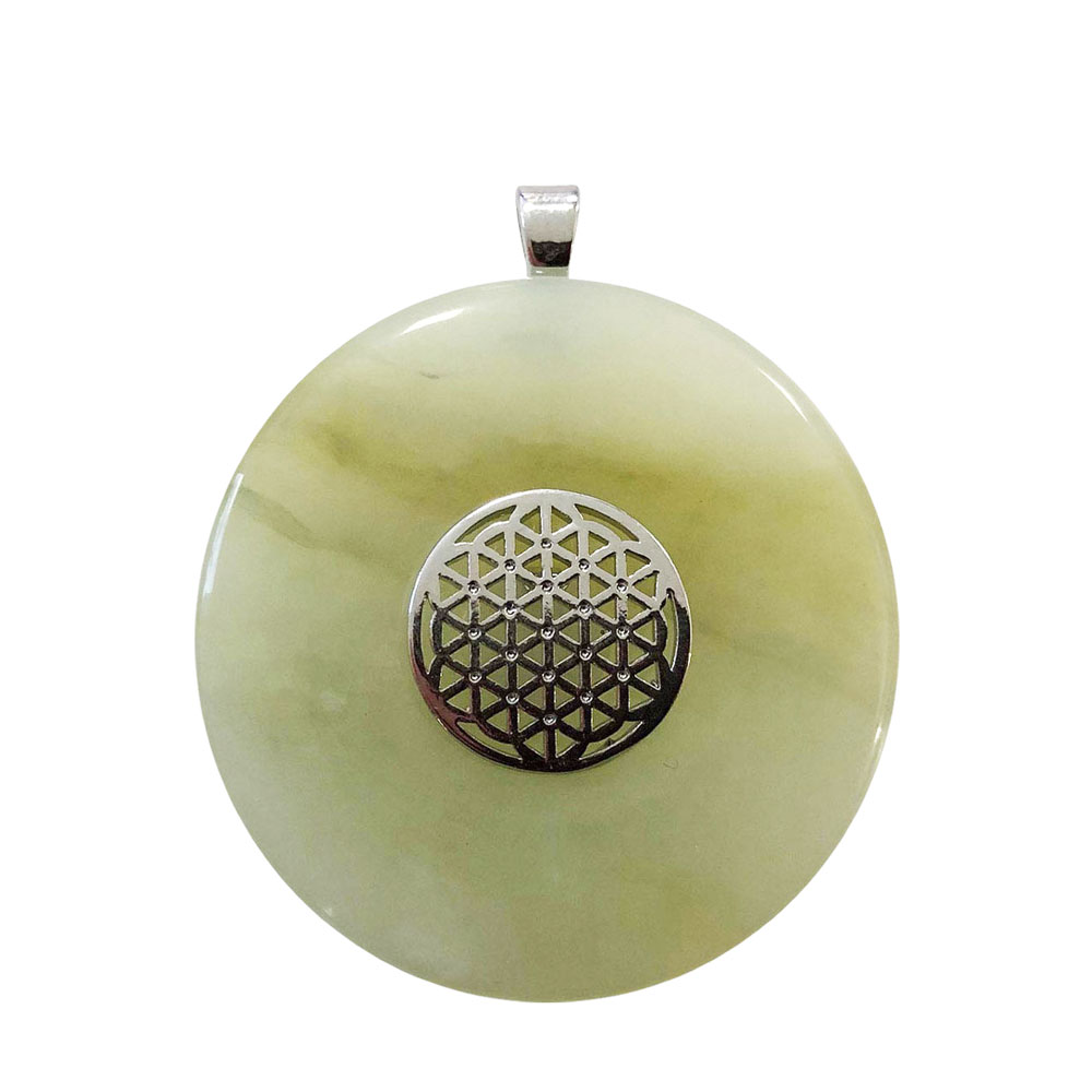 Le pendentif jade vert pi chinois a été entièrement réalisé dans nos ateliers. La pierre de jade a été minutieusement sélectionnée pour vous offrir un bijou unique de qualité. Polie afin de la rendre parfaitement lisse, la pierre de jade intégrée dans le pendentif jade vert donut de 40mm reste agréable au toucher. À votre cou, le pendentif insuffle ses nombreux bienfaits. La pierre de jade était régulièrement utilisée afin de soulager les douleurs néphrétiques et celles liées aux reins. En Orient, la pierre de jade possède une grande importance symbolique. En effet, elle personnifiait l’Empereur et incarnait les pouvoirs absolus du soleil. Dans d’autres contrées, elle permettrait de chasser les mauvais esprits. Symbole de la vie éternelle, elle pouvait compléter la confection d’une cigale qui était posée sur la bouche des défunts.