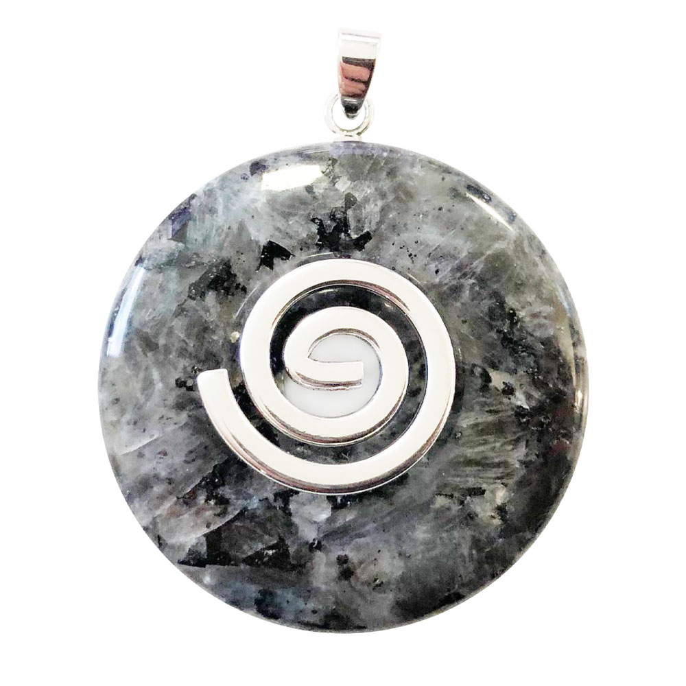 Pouvoirs du pendentif Larvikite en forme de pi chinois en lithothérapie