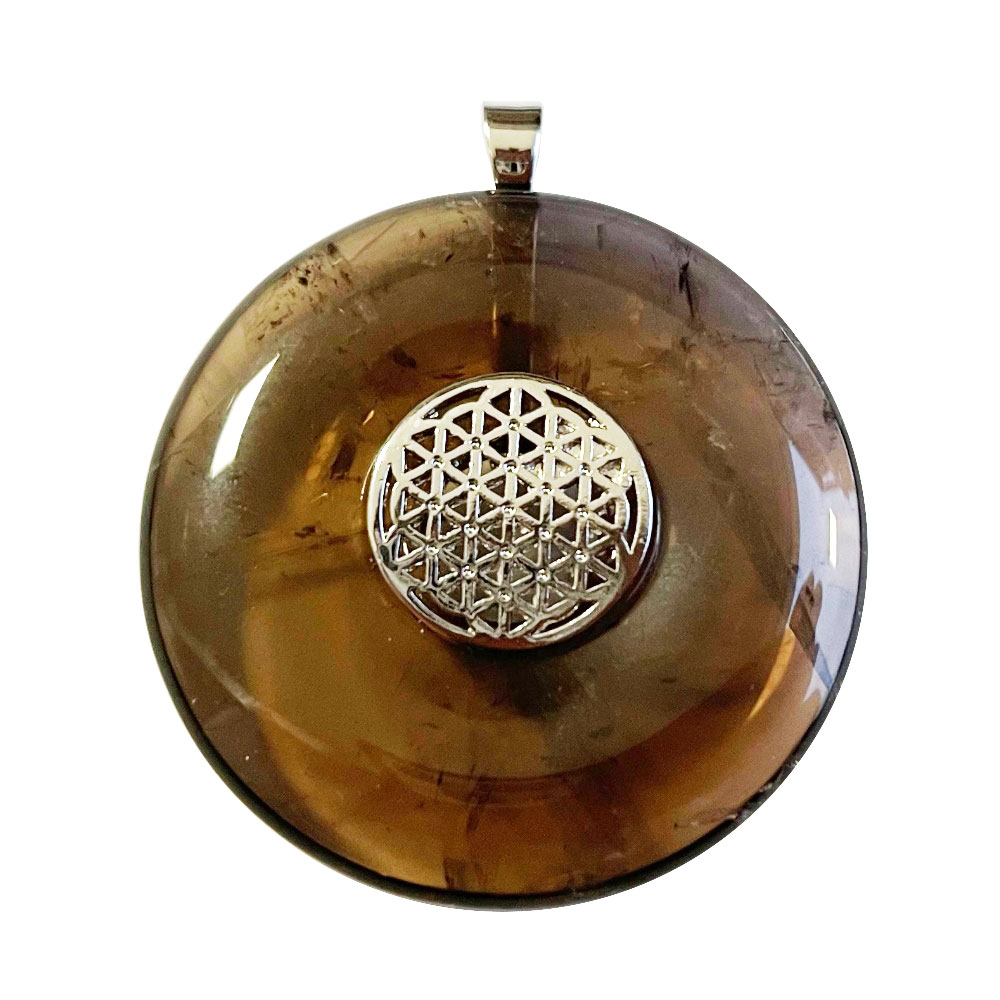 Pendentif quartz fumé – Forme : PI Chinois ou Donut 40mm