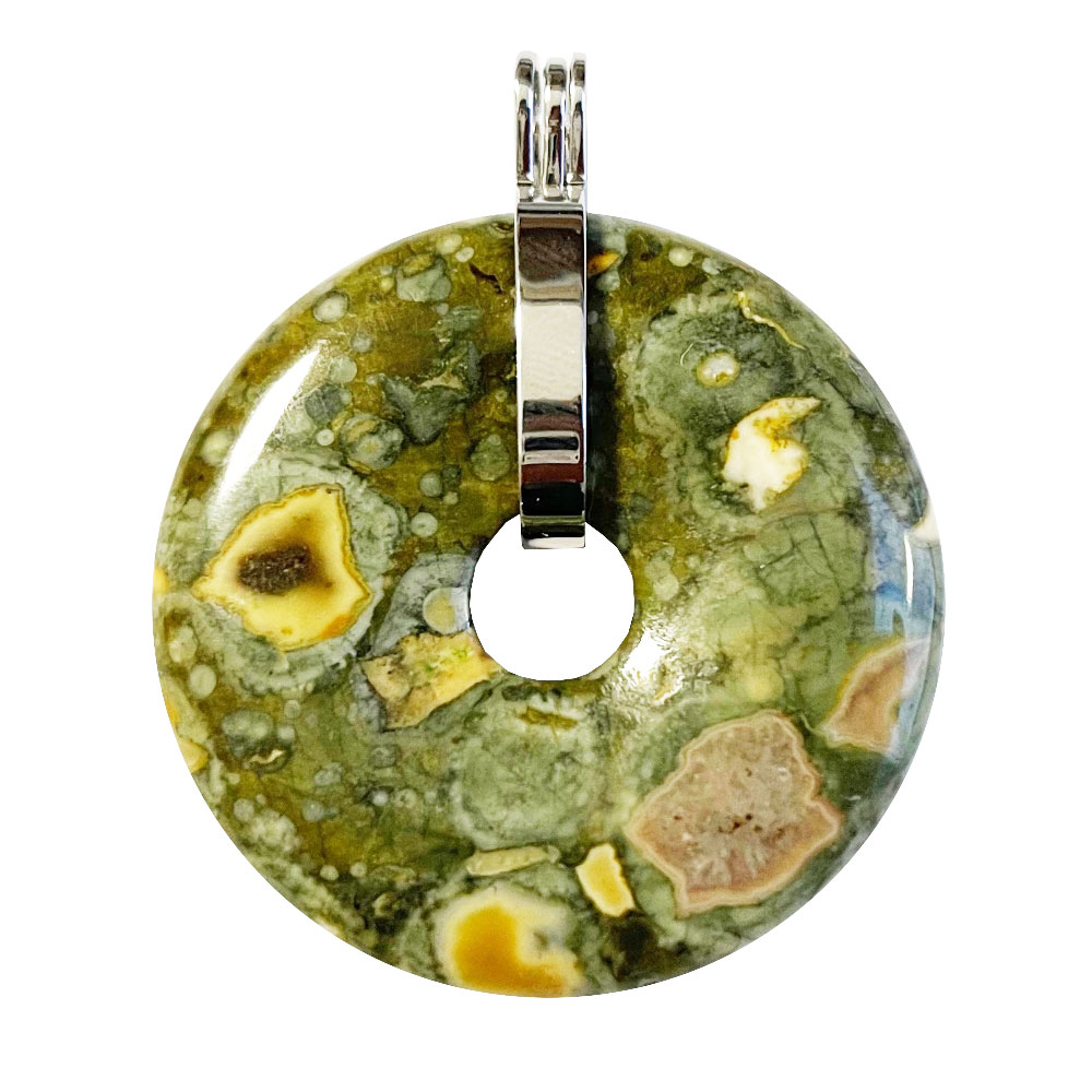 Pendentif rhyolite verte – Forme : PI Chinois ou Donut 40mm