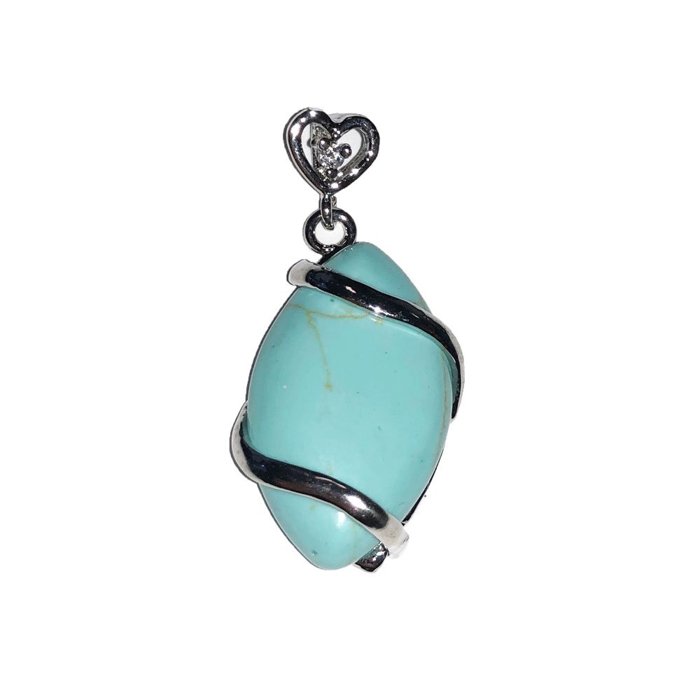 Il y a plus de 6000 ans, les Égyptiens exploitaient déjà la pierre turquoise pour sa beauté exceptionnelle. D’un bleu aussi spectaculaire que celui de la mer des Caraïbes, la pierre turquoise était souvent utilisée pour confectionner des accessoires de mode et des objets de décorations. D’ailleurs, les archéologues ont retrouvé de nombreux bracelets sertis de turquoises dans les sarcophages de l’époque. Quelques millénaires plus tard, ce sont les Aztèques qui se sont approprié la pierre turquoise. Bien trop puissante pour les hommes, la turquoise était alors réservée aux dieux, et plus particulièrement au Dieu du Feu, également surnommé le Maître de la Turquoise. Plus récemment, ce sont les Tibétains et les Indiens qui ont exploité la turquoise pour ses vertus curatrices. Selon eux, la turquoise serait capable de soulager les blessures de serpent et de scorpion. Aujourd’hui, la turquoise est principalement utilisée en lithothérapie et en joaillerie pour son incroyable couleur, mais aussi pour ses puissantes vertus sur le corps et l’esprit. Spécialement taillé en forme d’œil de cheval, ce pendentif turquoise stabilisée est idéal pour profiter des propriétés apaisantes et curatrices de la pierre turquoise.