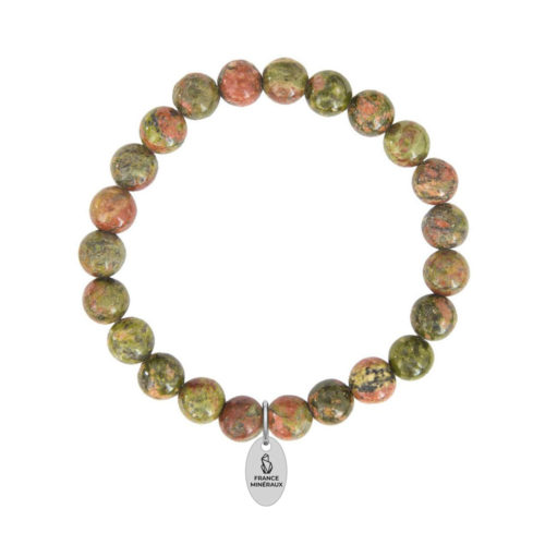 Quand l’épidote se pare de taches rosées, celle-ci devient l’unakite. Assez rare, l’unakite tient son nom du lieu où elle a été découverte en 1874 : Les montagnes Unaka, aux sud des états-unis. La couleur, principalement verte, saura vous captiver à tel point que vous ne voudrez plus vous séparer de votre fil de perles unakite en 8mm. Les teintes rosées, quant à elles, apporteront une touche de chaleur et de confort. Chez France-minéraux, nous sommes fiers de vous présenter ce fil unakite 8mm en forme de chapelet de 40Cm où chaque pierre boule est travaillée avec soin.