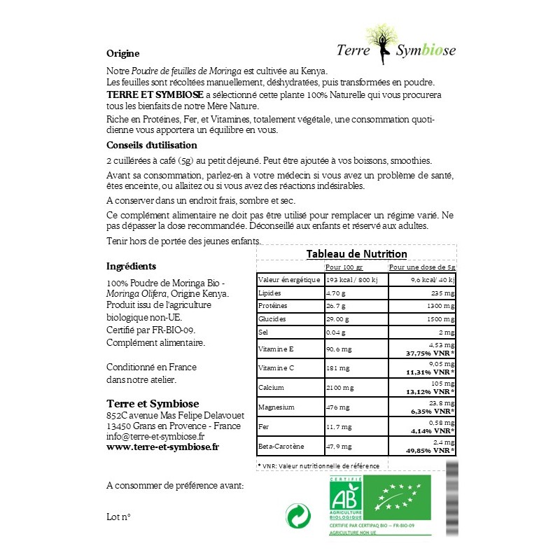 Notre Feuille de Moringa, Sans additif et 100% Naturel
