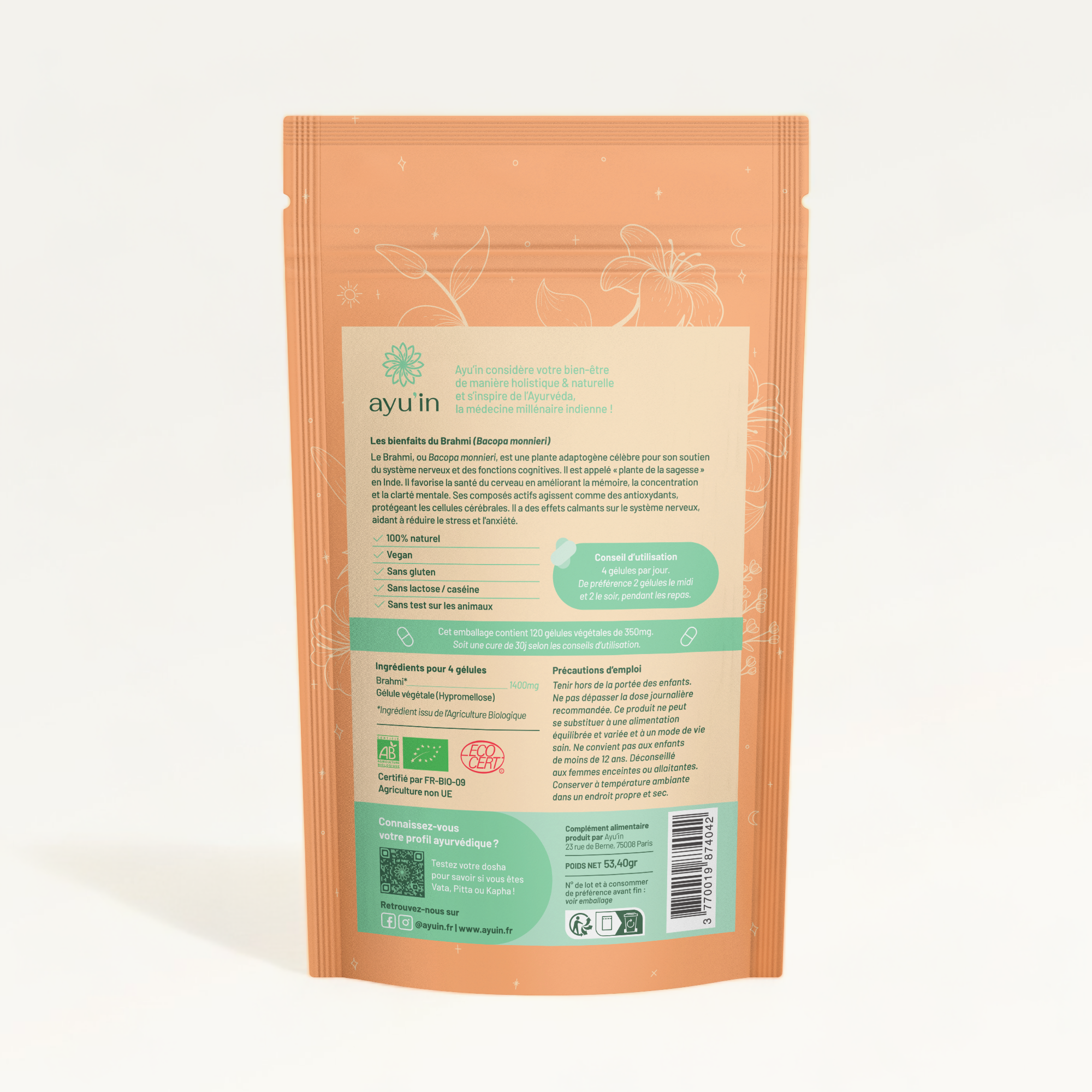 ⭐ Certifié BIO, vegan, fabriqué en France, sachet recycable et refermable.