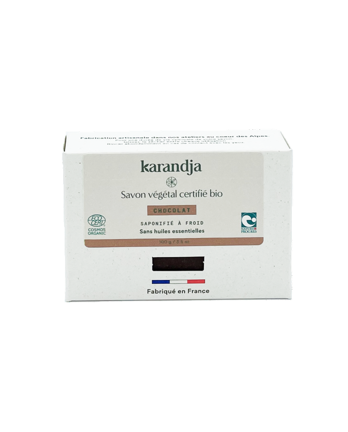 Le savon Chocolat contient du beurre de Cacao connu pour ses propriétés nourrissantes et apaisantes. Riche en acides gras, il apporte de la douceur et de l’élasticité à la peau.