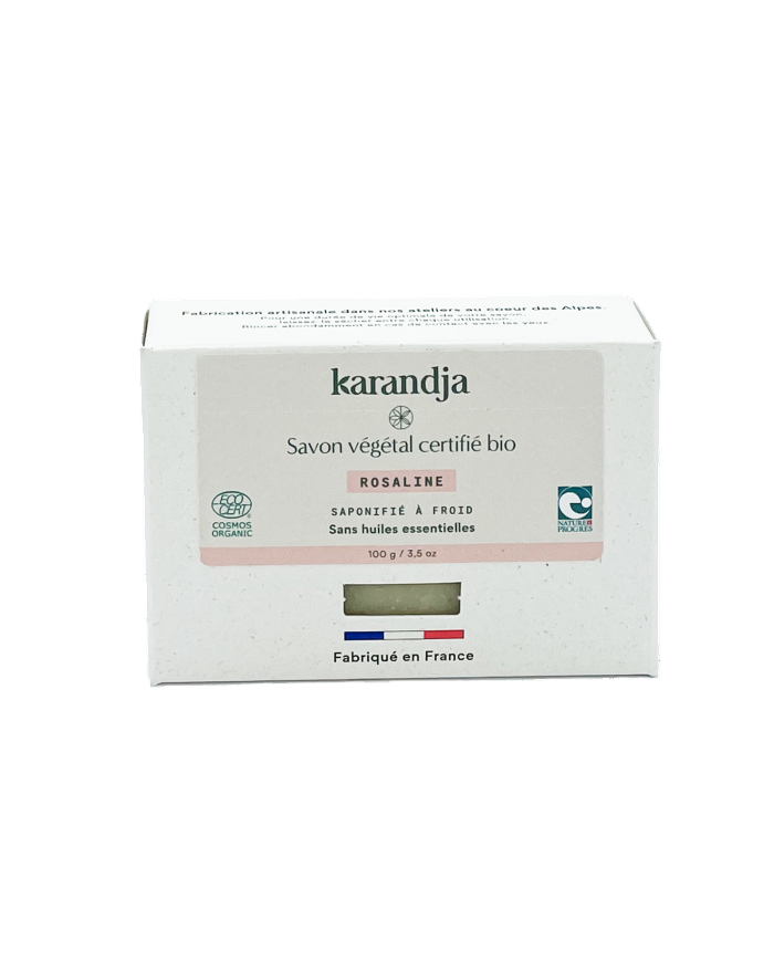 Savon solide, certifié Bio, saponifié à froid, surgras 5 %, sans huiles essentielles, végan. Fabrication artisanale dans nos ateliers au cœur des Alpes.