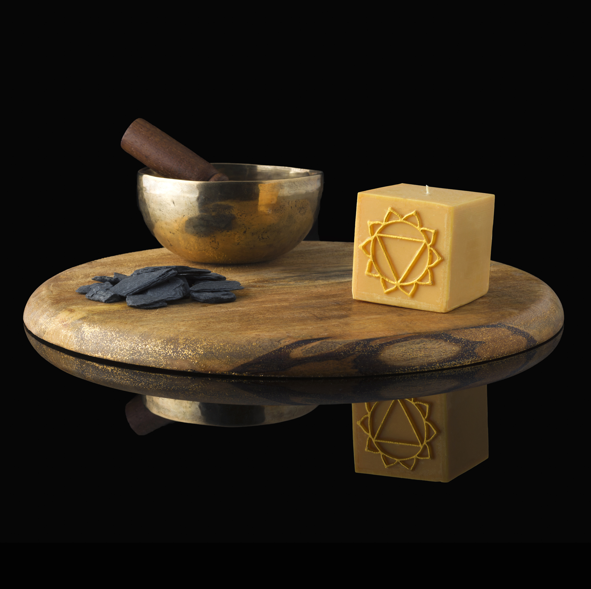 Cette bougie incarne les vertus du chakra jaune représentant le chakra du plexus solaire, Manipura, situé au-dessus du nombril. Il est associé à l’élément feu, favorisant la confiance et le passage à l’action.