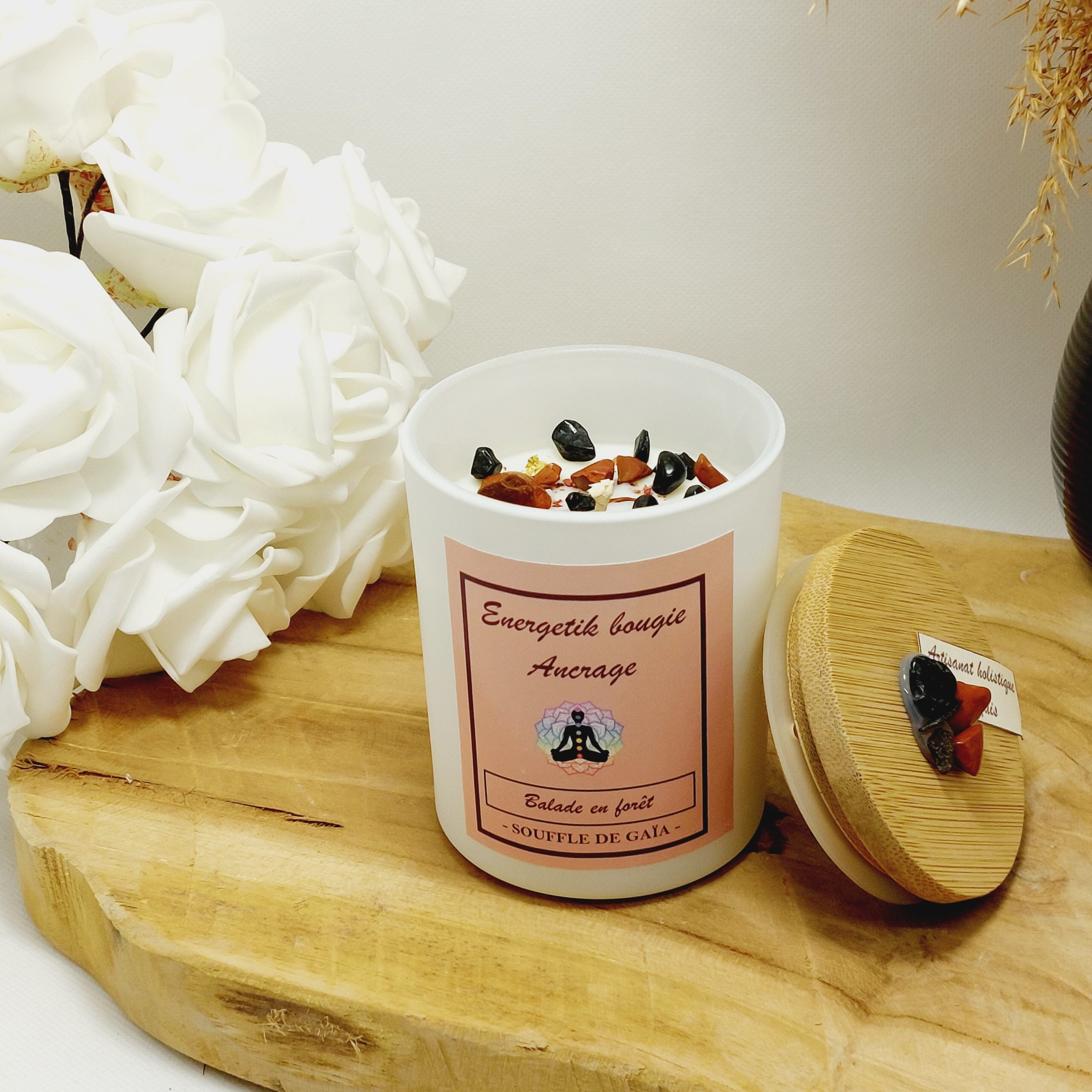 - Bougie issue de l’artisanat holistique français ( notre atelier se trouve dans les Alpes de Haute Provence).