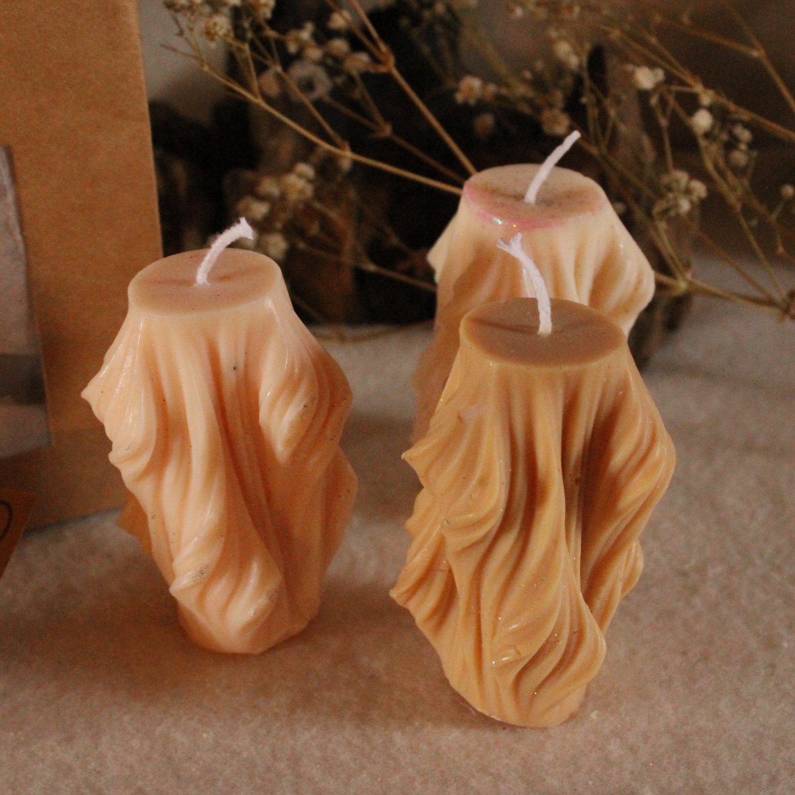Photo non contractuelle. Nos bougies sont fabriqués dans notre atelier à la main, il se peut que des irrégularités apparaissent.“