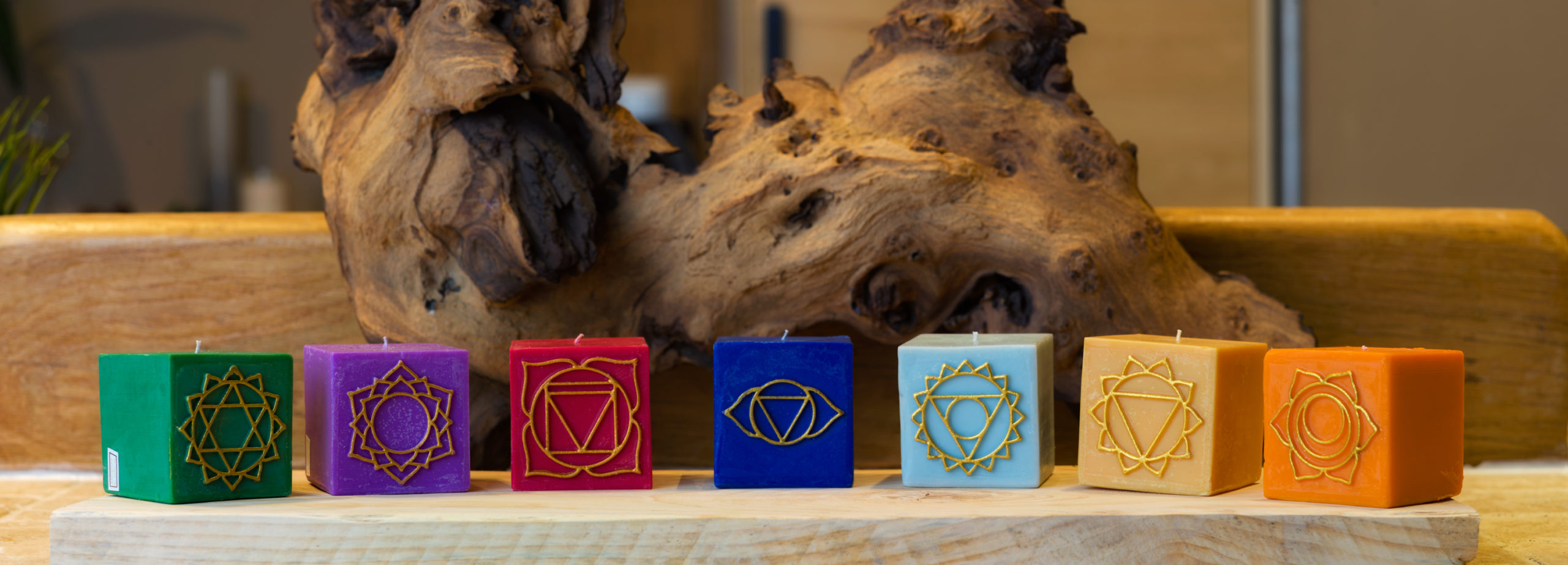 Ces bougies incarnent les vertus de chacun de sept chakras.